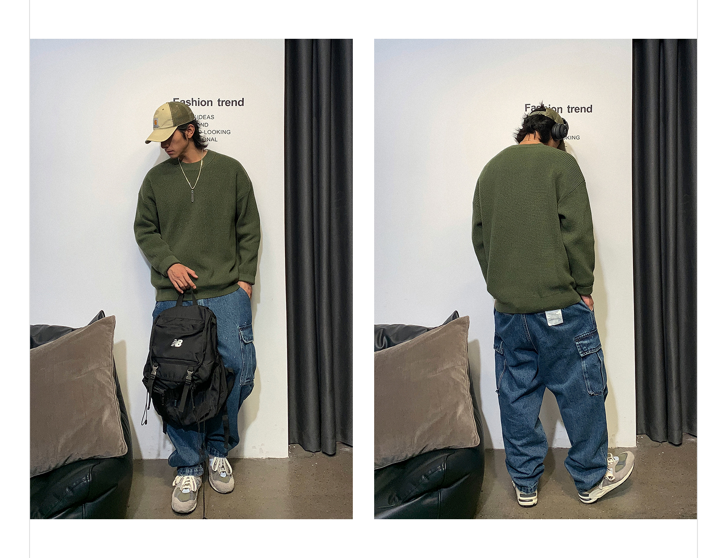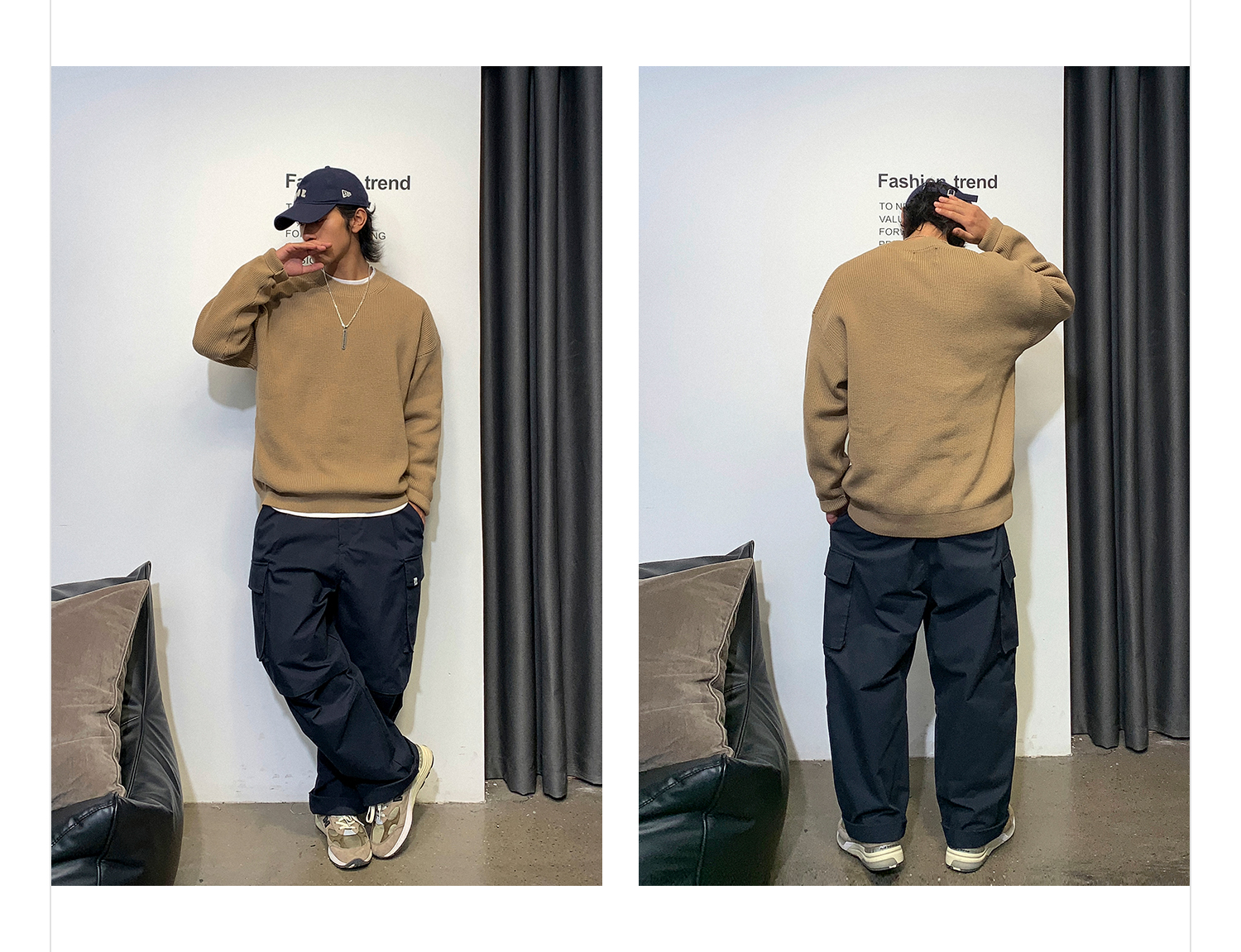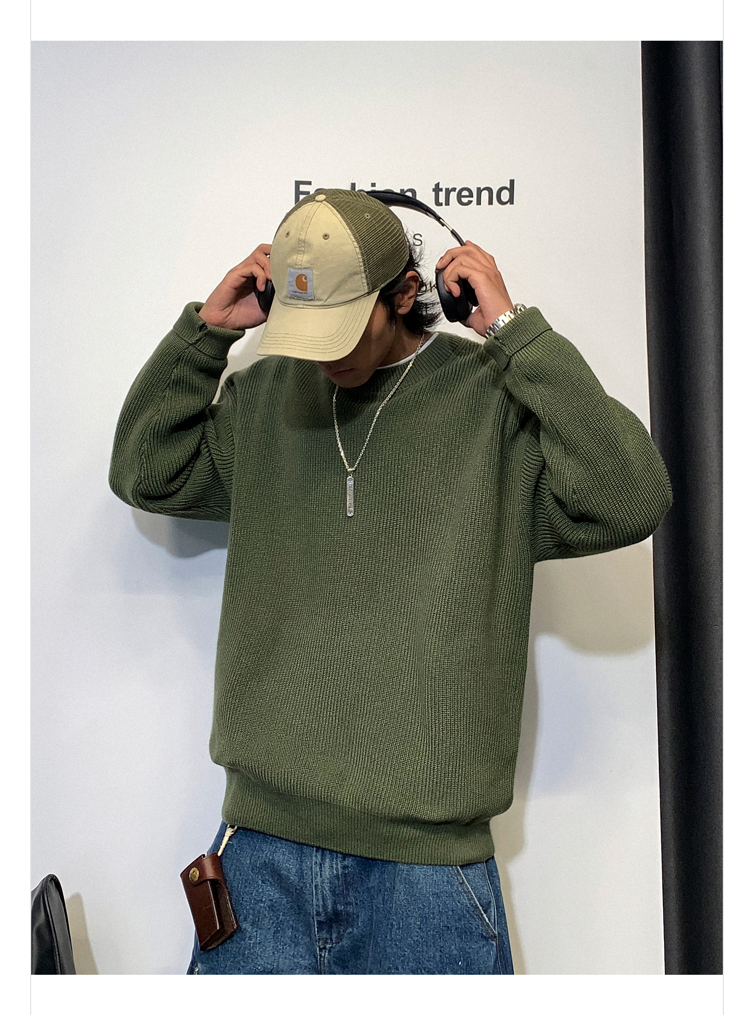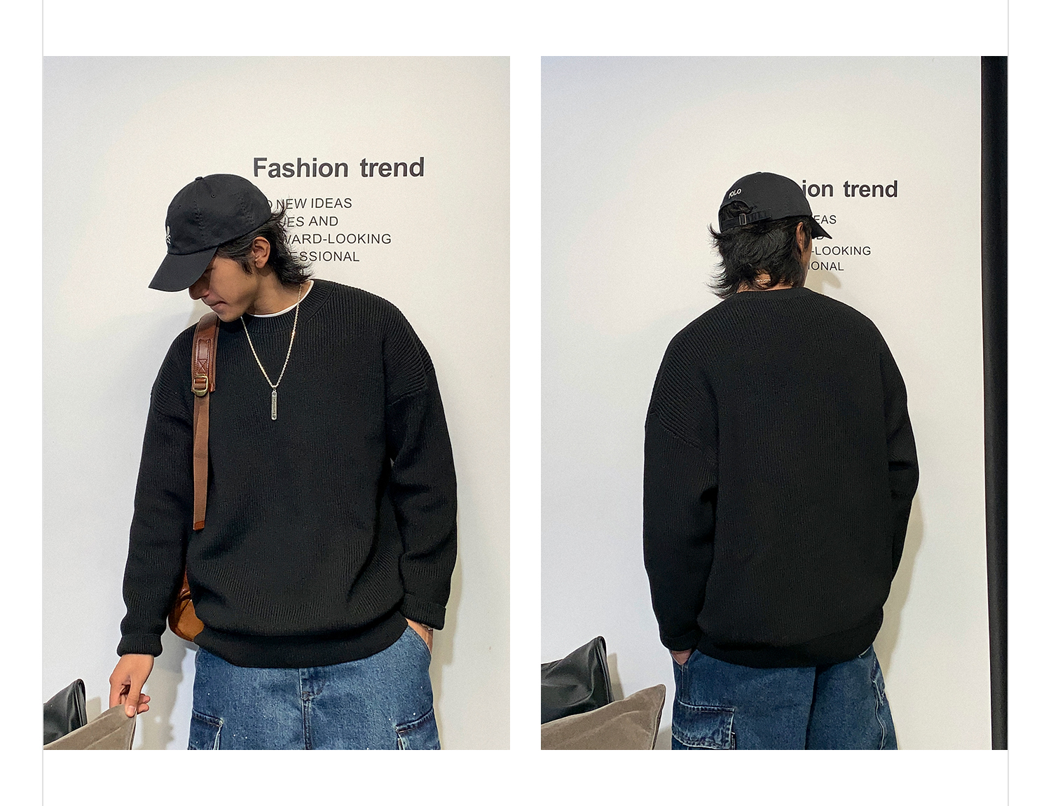 徐太浪日系纯色慵懒气质毛衣男秋冬款潮牌宽松内搭圆领针织衫上衣