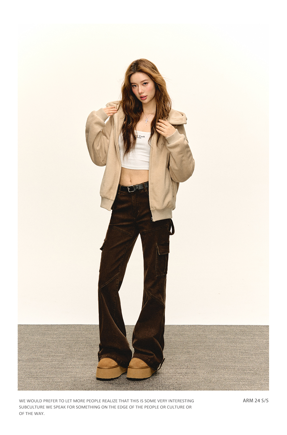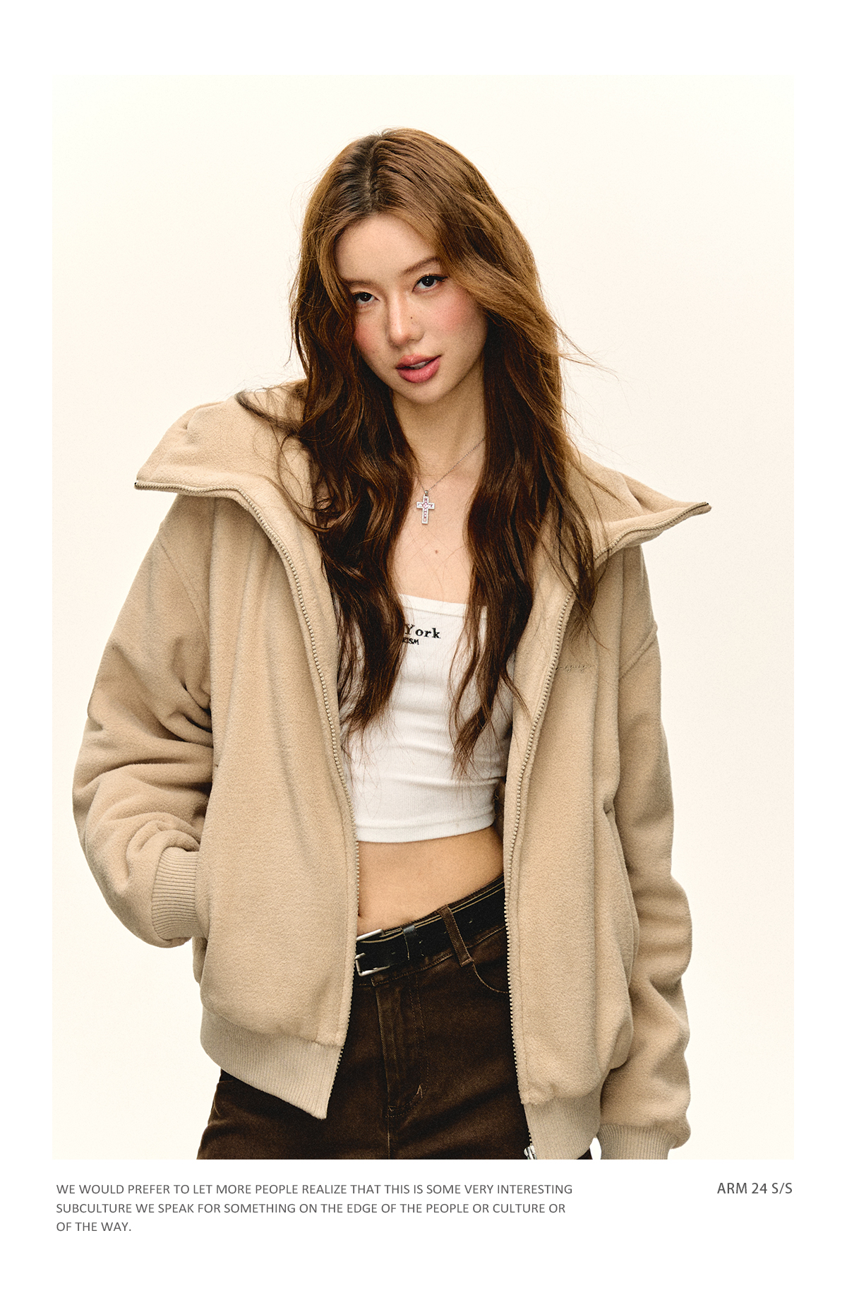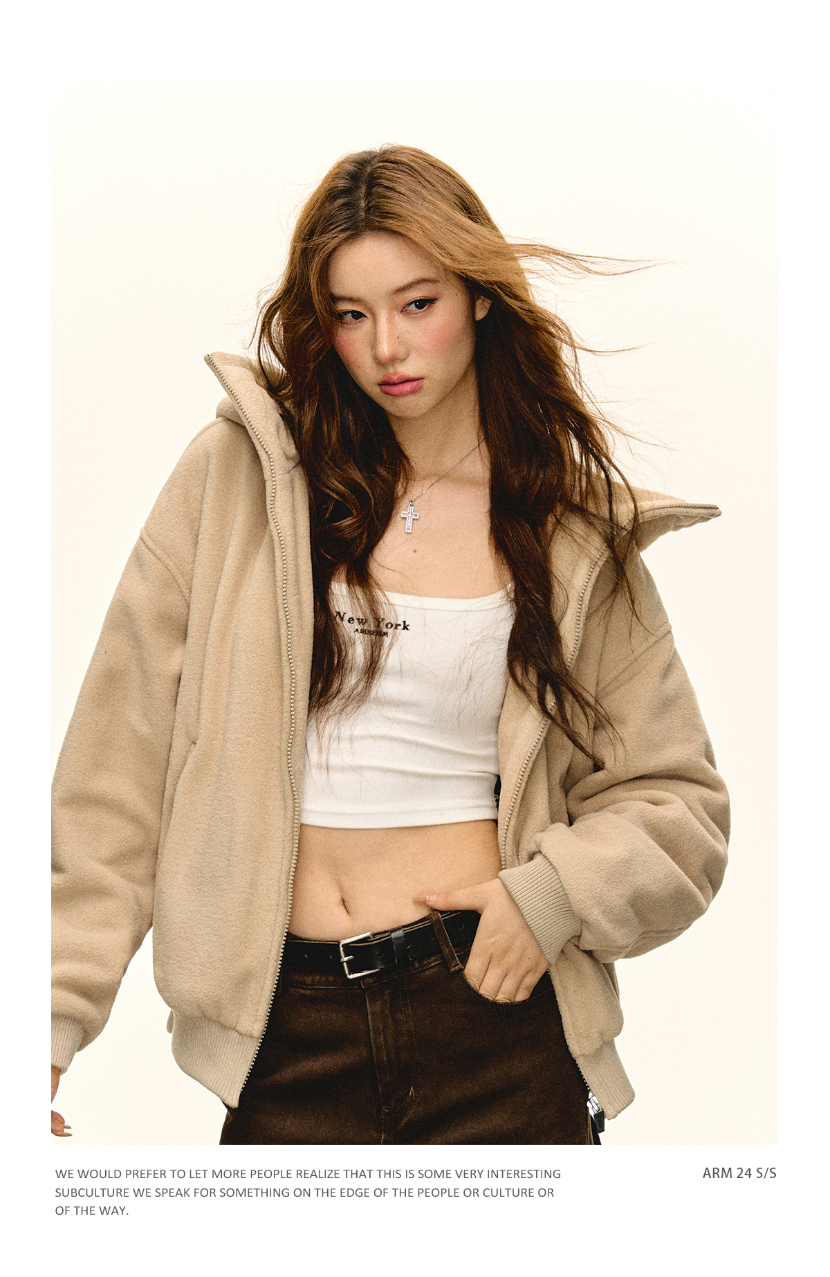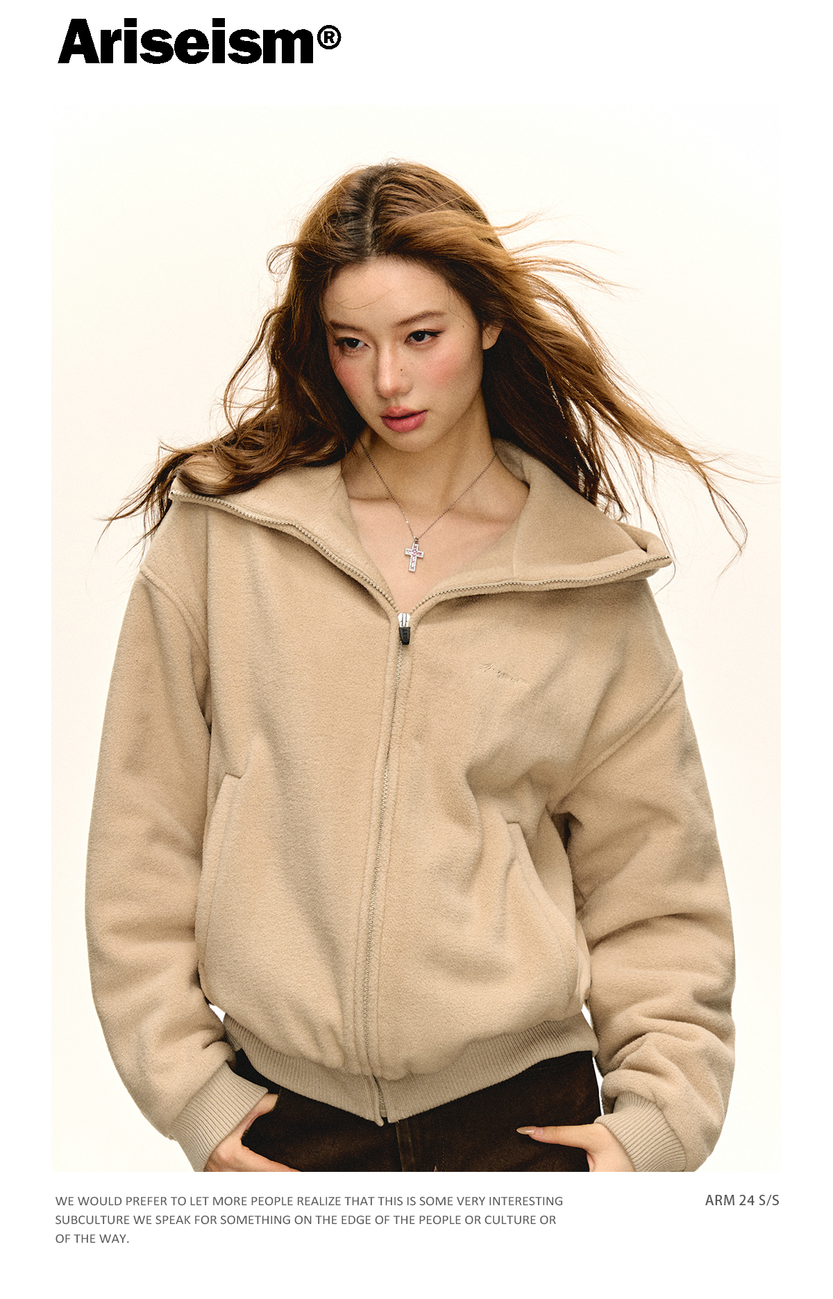Ariseism 美式复古连帽摇粒绒开衫卫衣外套女春秋新款上衣