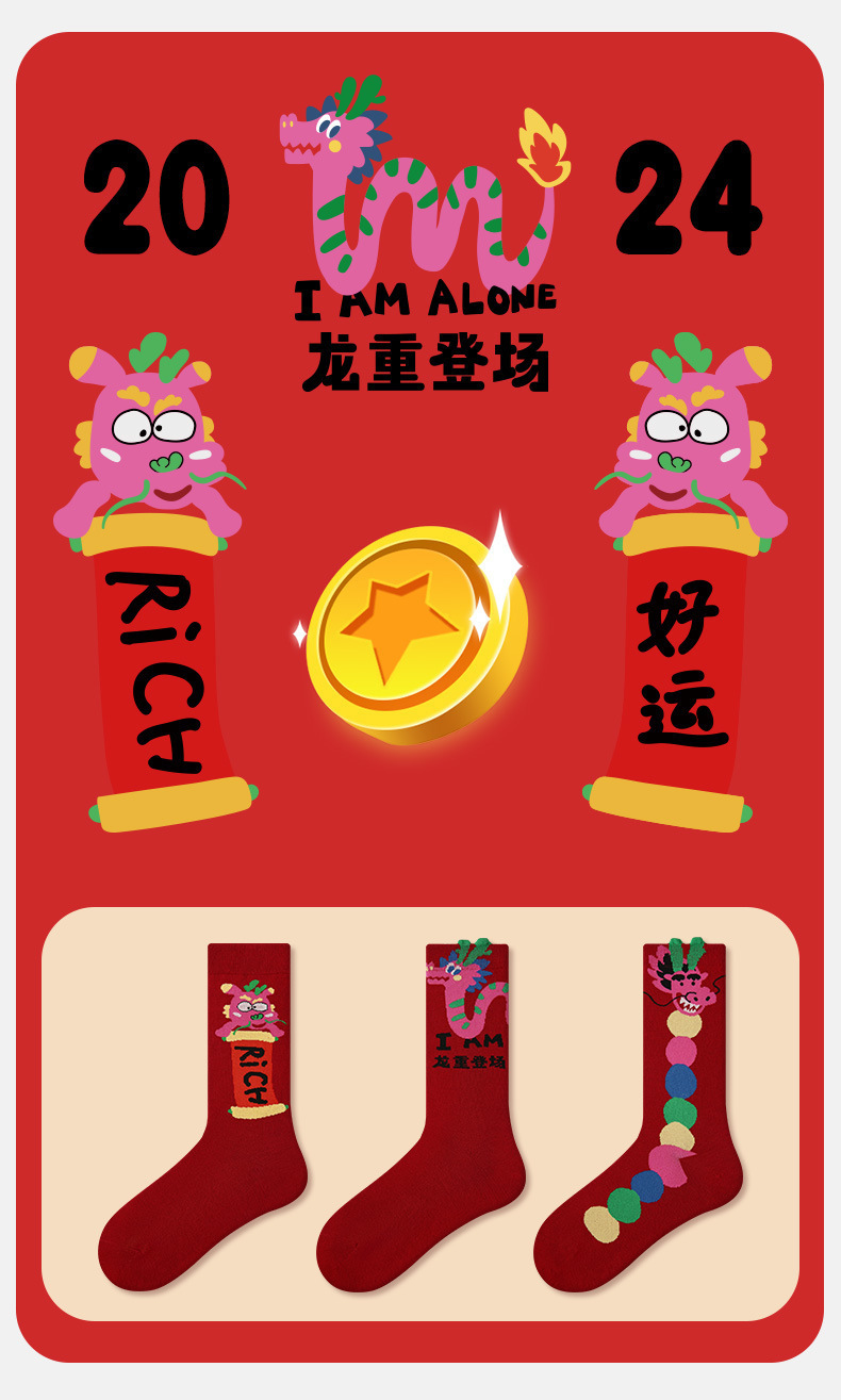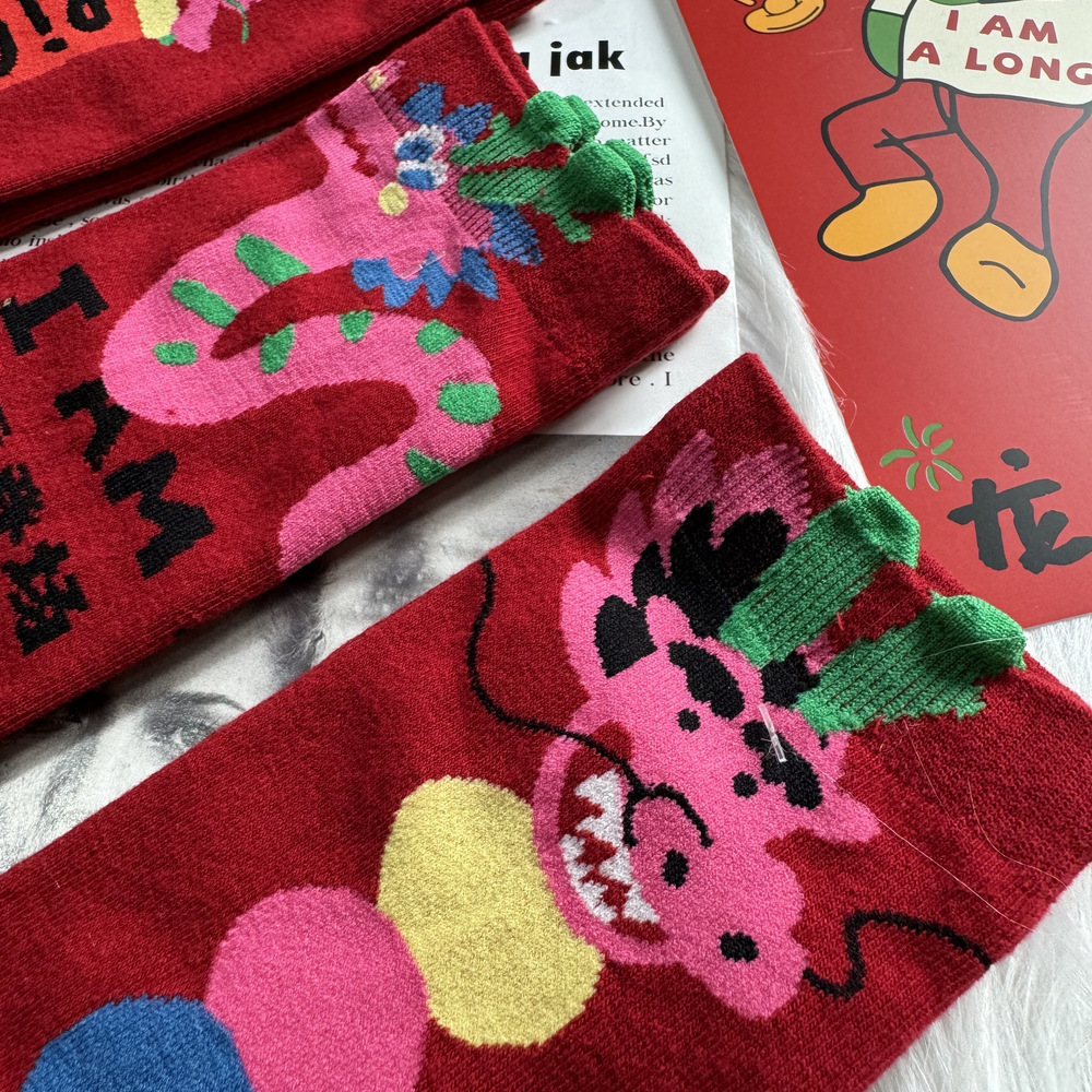 龙年袜子每一双都好心动啊,红红火火的新年袜子真的会喜欢啊,可可爱爱的卡通小龙,上脚非常棒!