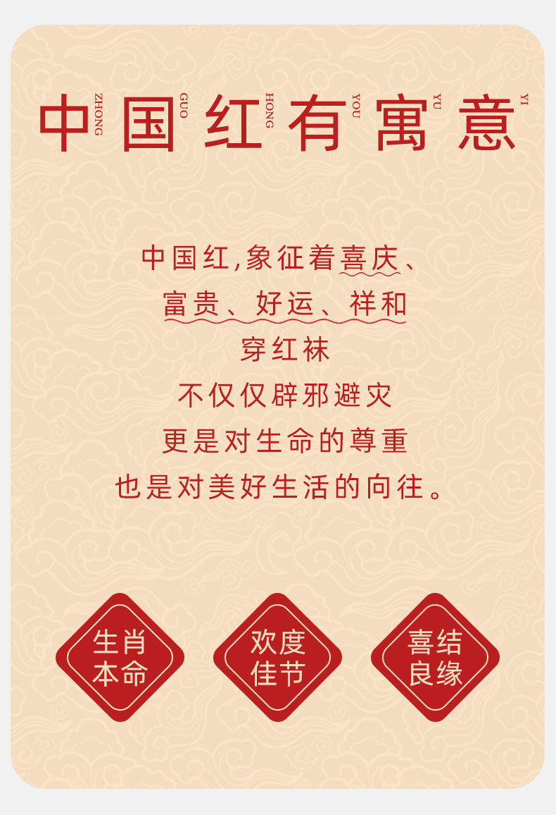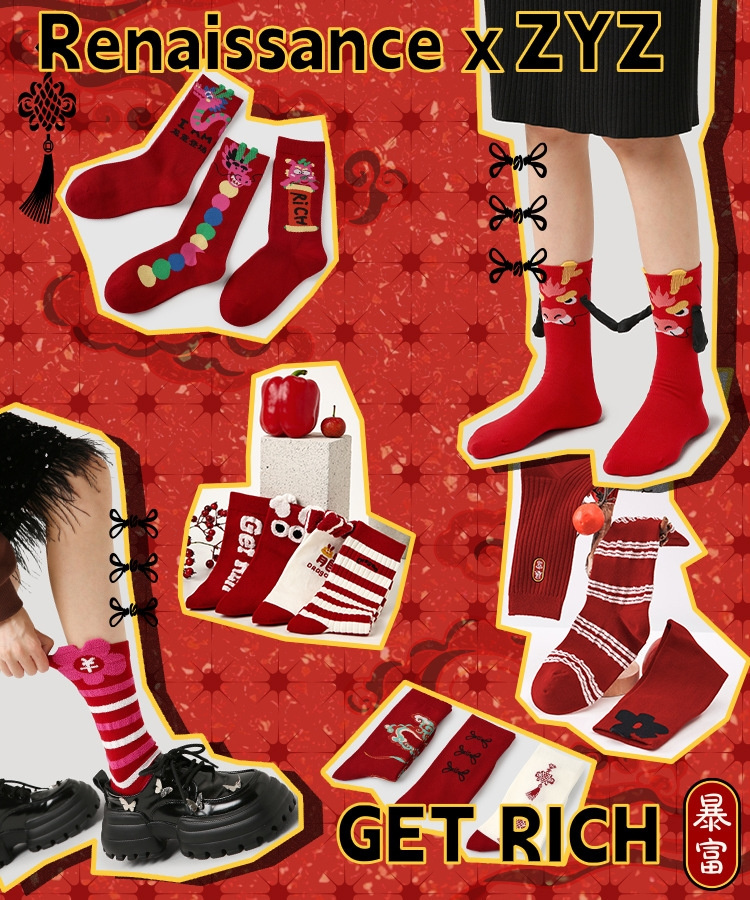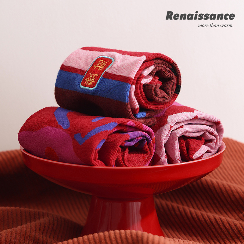 选择「𝒓𝒆𝒏𝒂𝒊𝒔𝒔𝒂𝒏𝒄𝒆本命年系列袜子」用颜值和舒适感并存的袜子,解锁“鸿运”正确打开方式,做一个“喜庆”的时髦精!