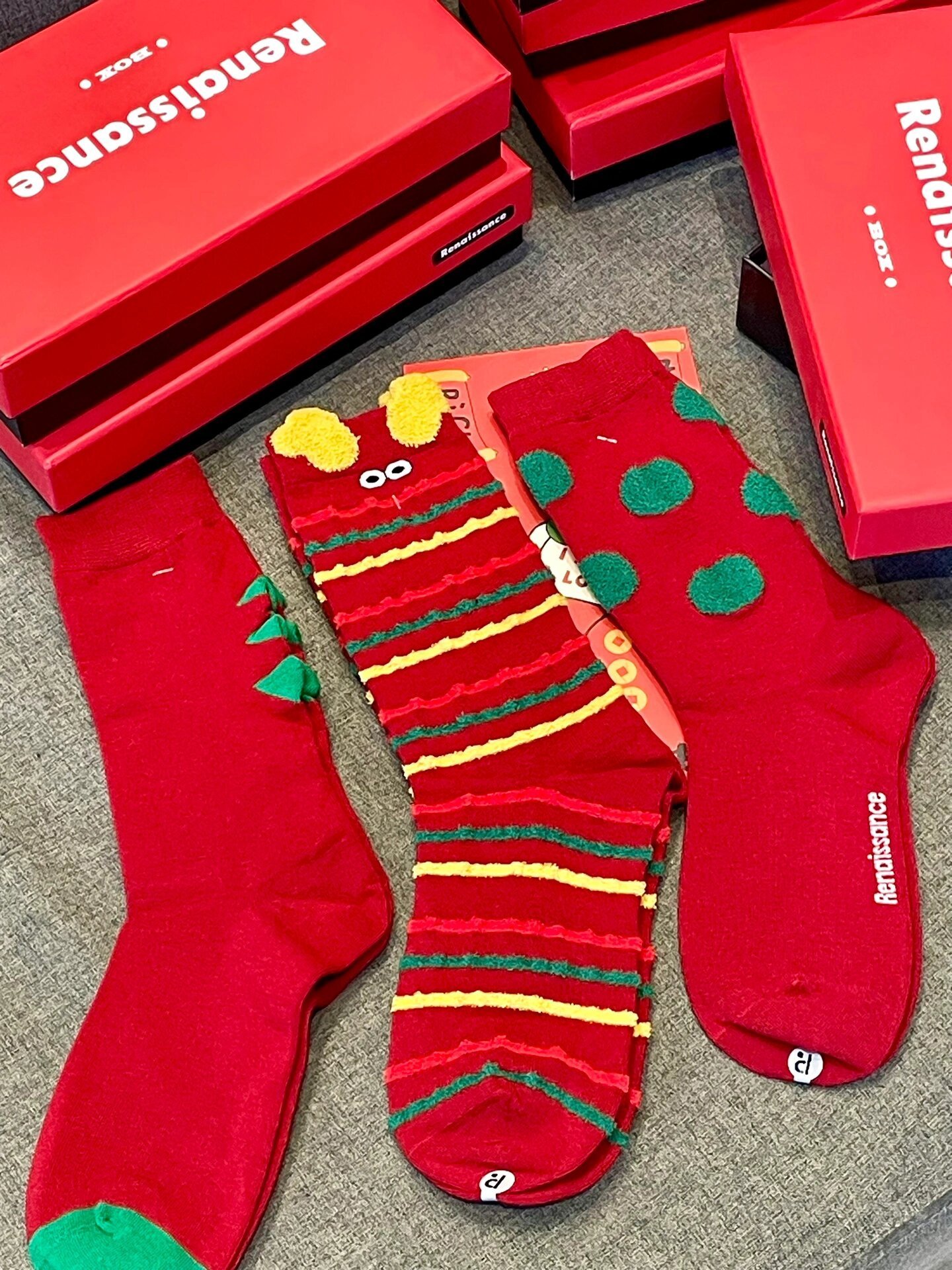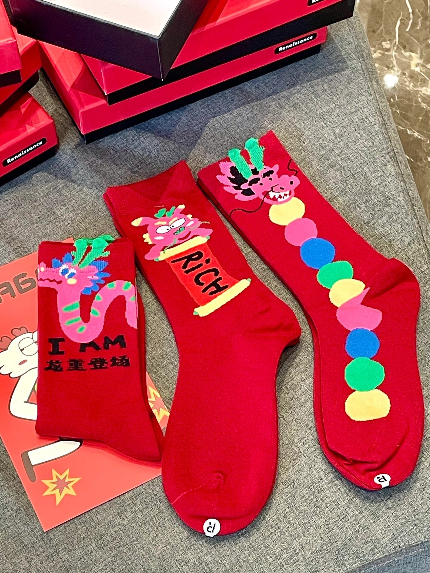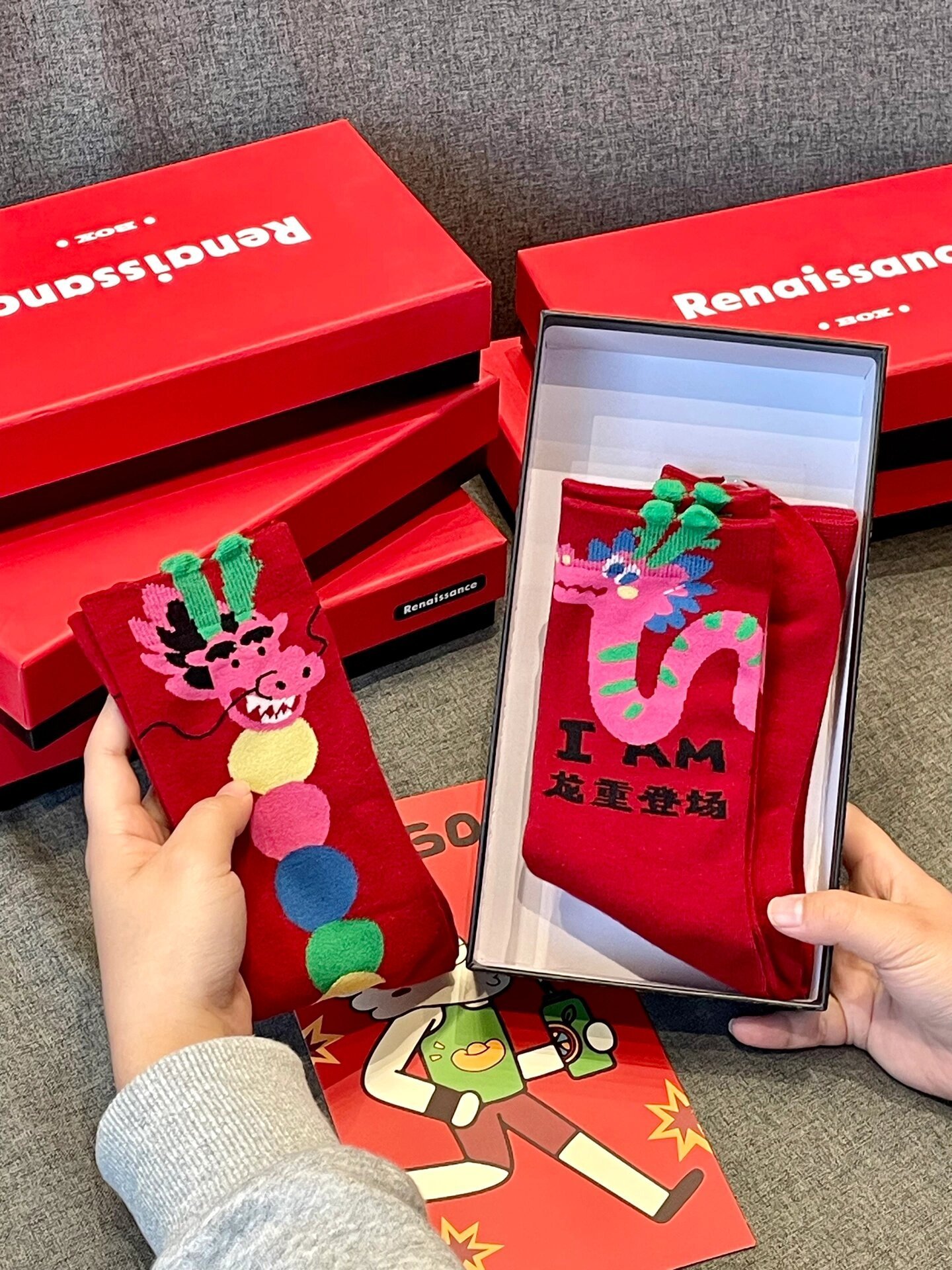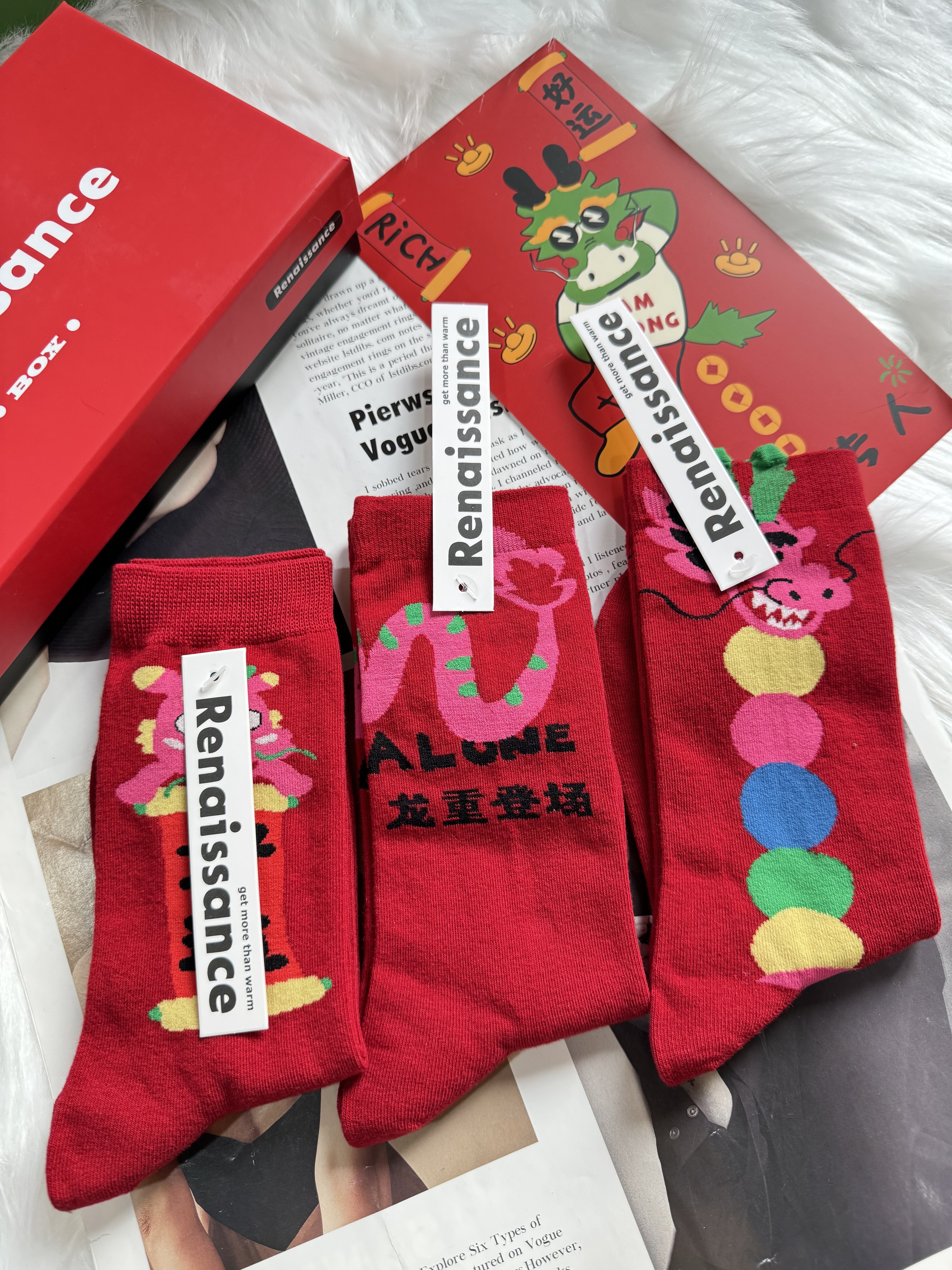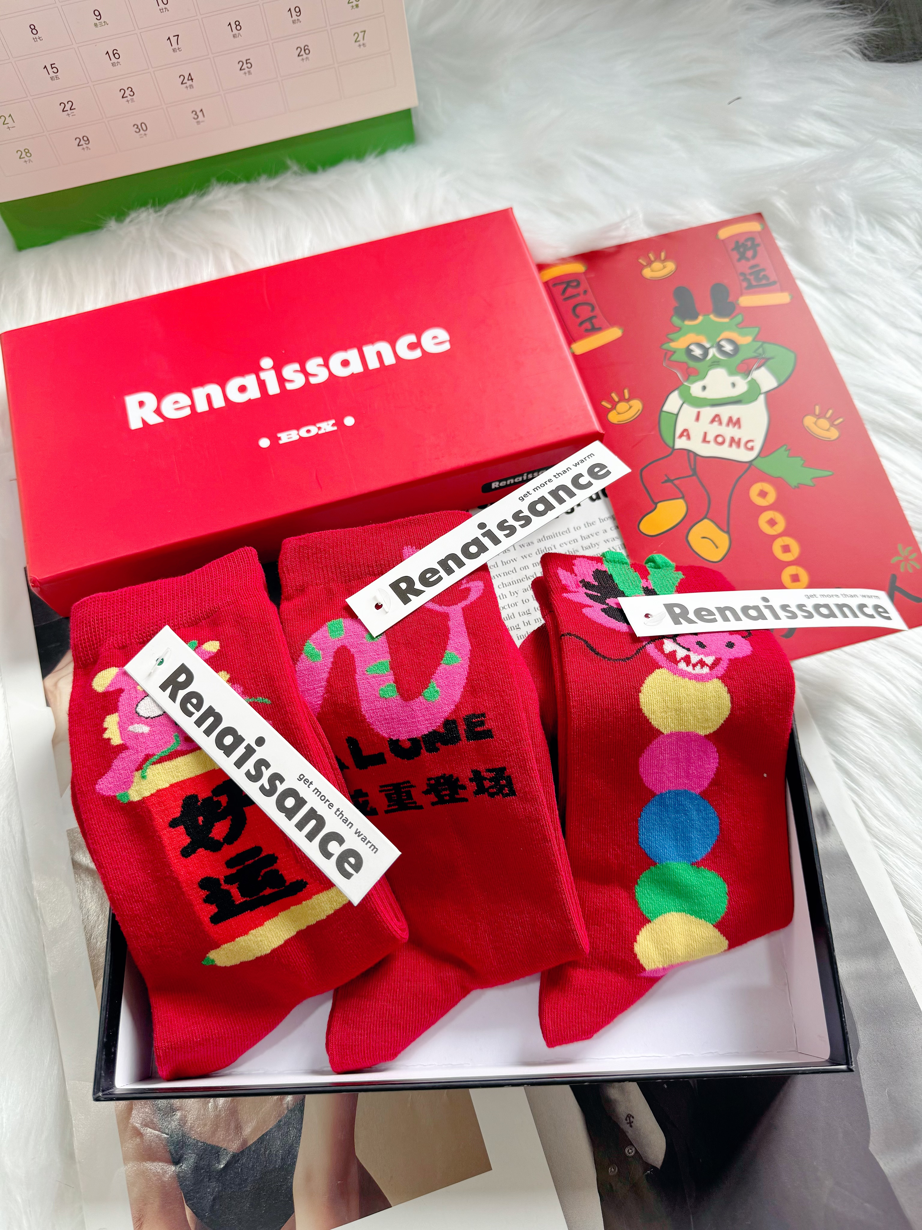 🐉本命年限定款🧧带来一整年的红运「Renaissance 新年限定女袜」🧦 被这组龙袜子拿捏了,从内到外都是红红火火的🔥温暖过冬就靠你了 🌈上脚柔软细腻舒适,耐磨不易变形 🎁精品礼盒包装