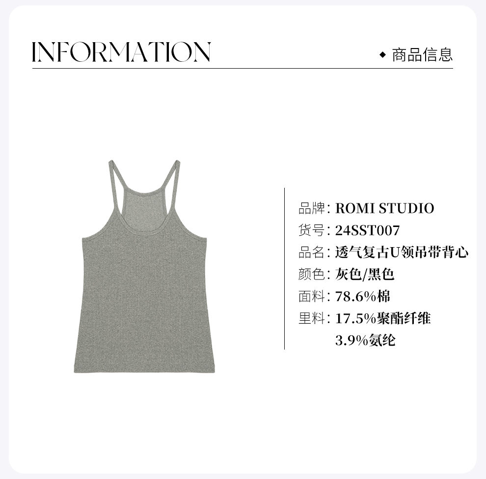 ROMI STUDIO“裸肤挚爱"棉质软糯弹力透气复古U领吊带背心24SST007