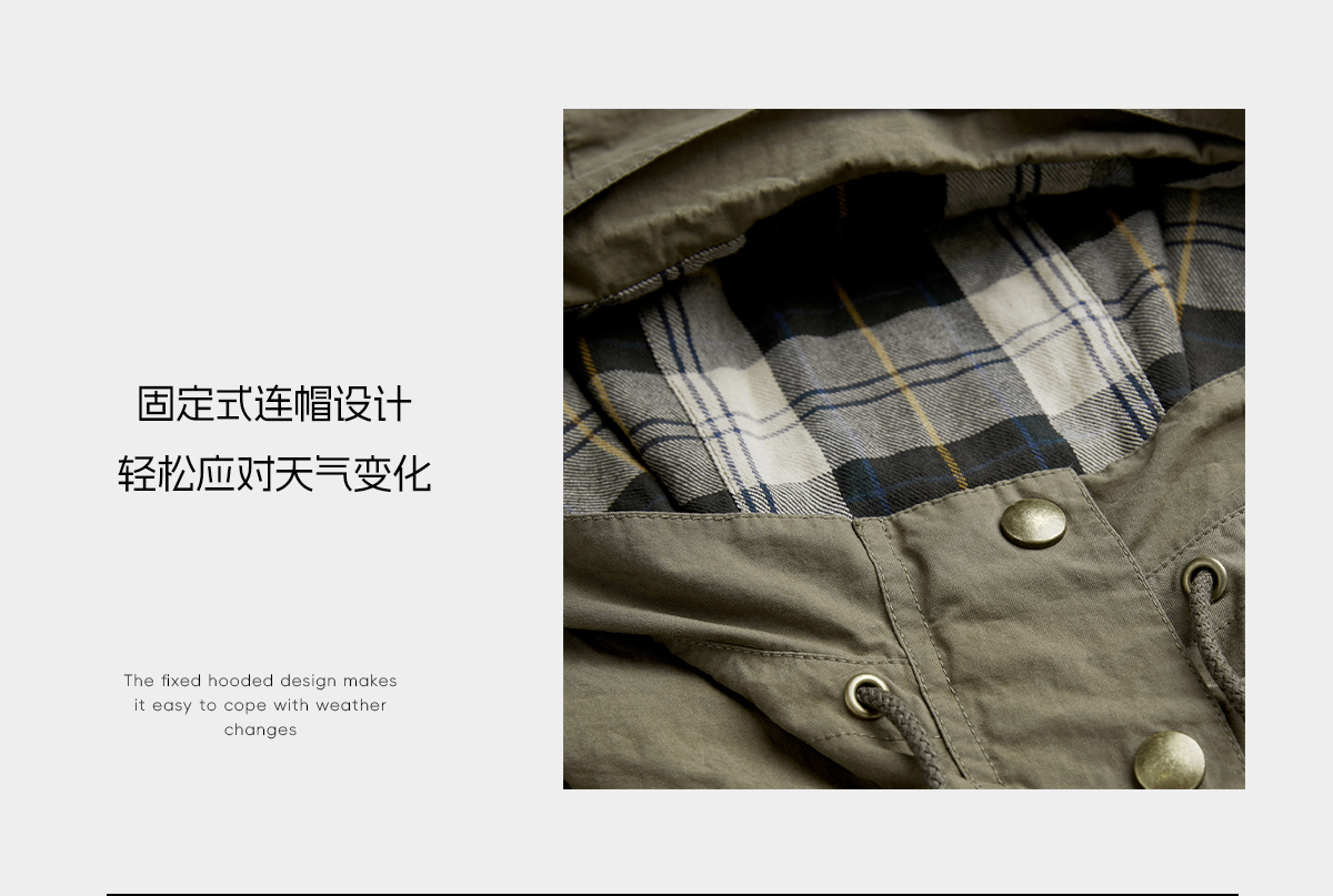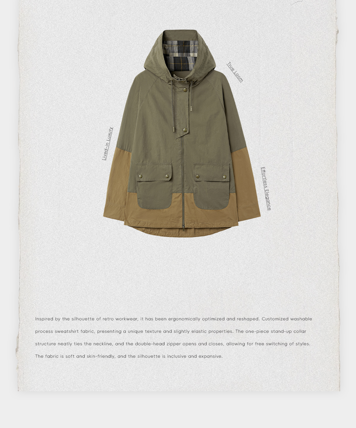 ROMI STUDIO“英式复古”长绒棉撞色拼接做旧连帽外套 RWCAWY5105