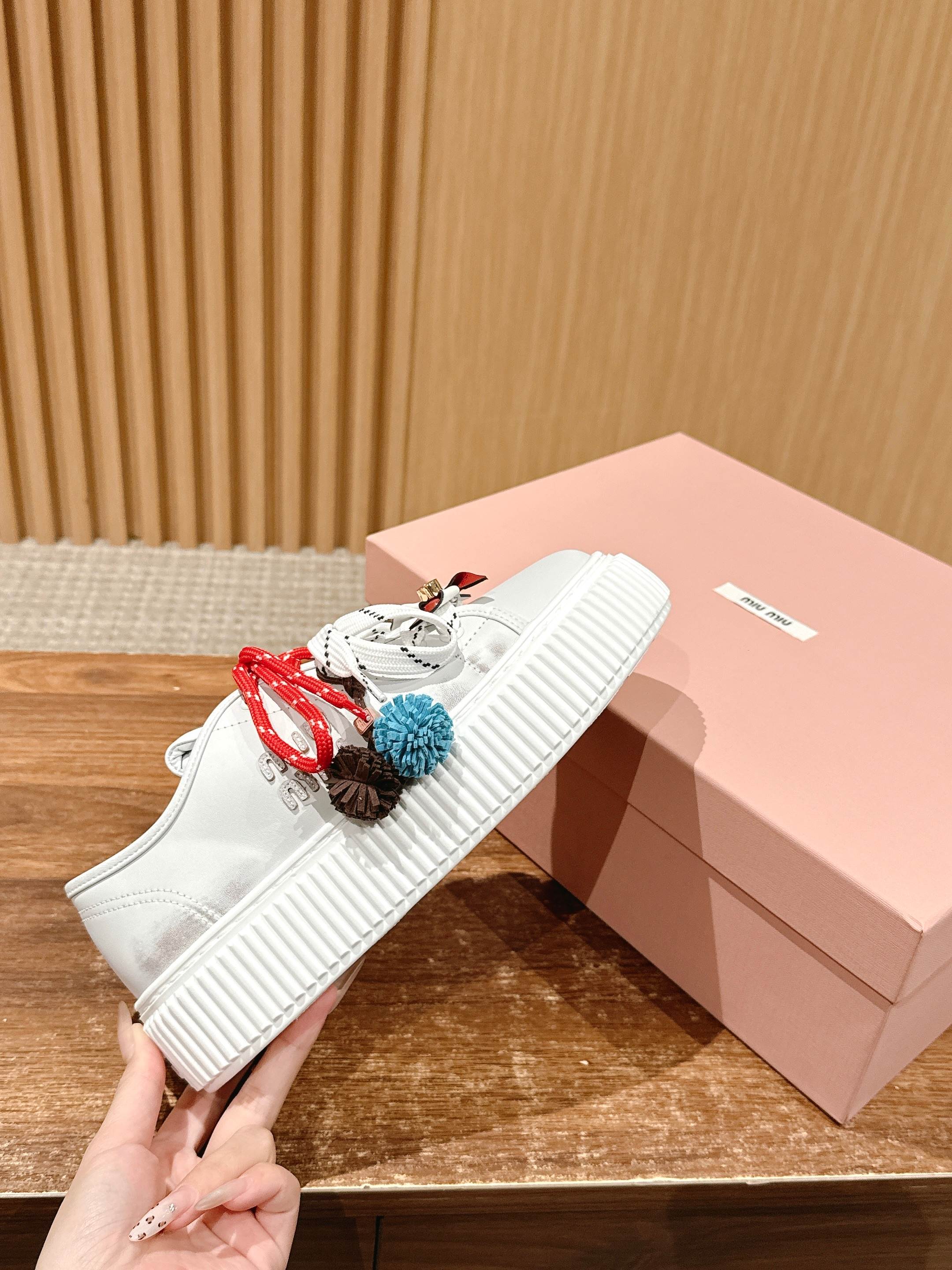 缪缪 秋冬新款 厚底 休闲小白鞋 羊毛饼干鞋(DBG)
