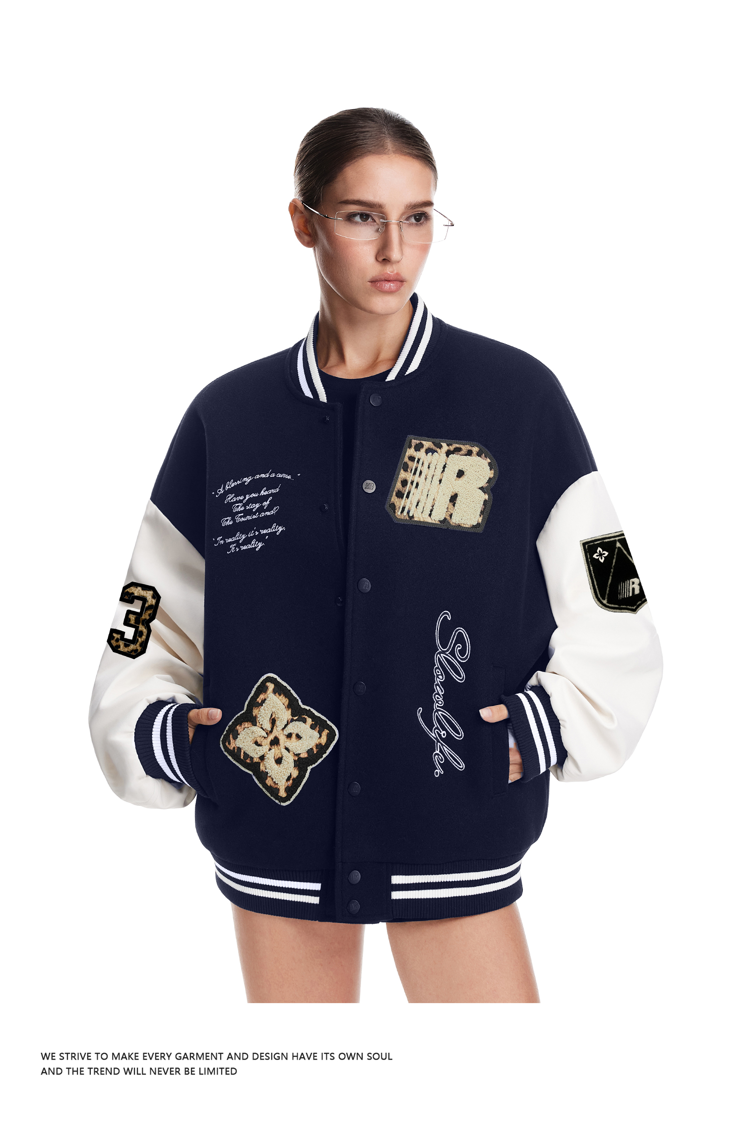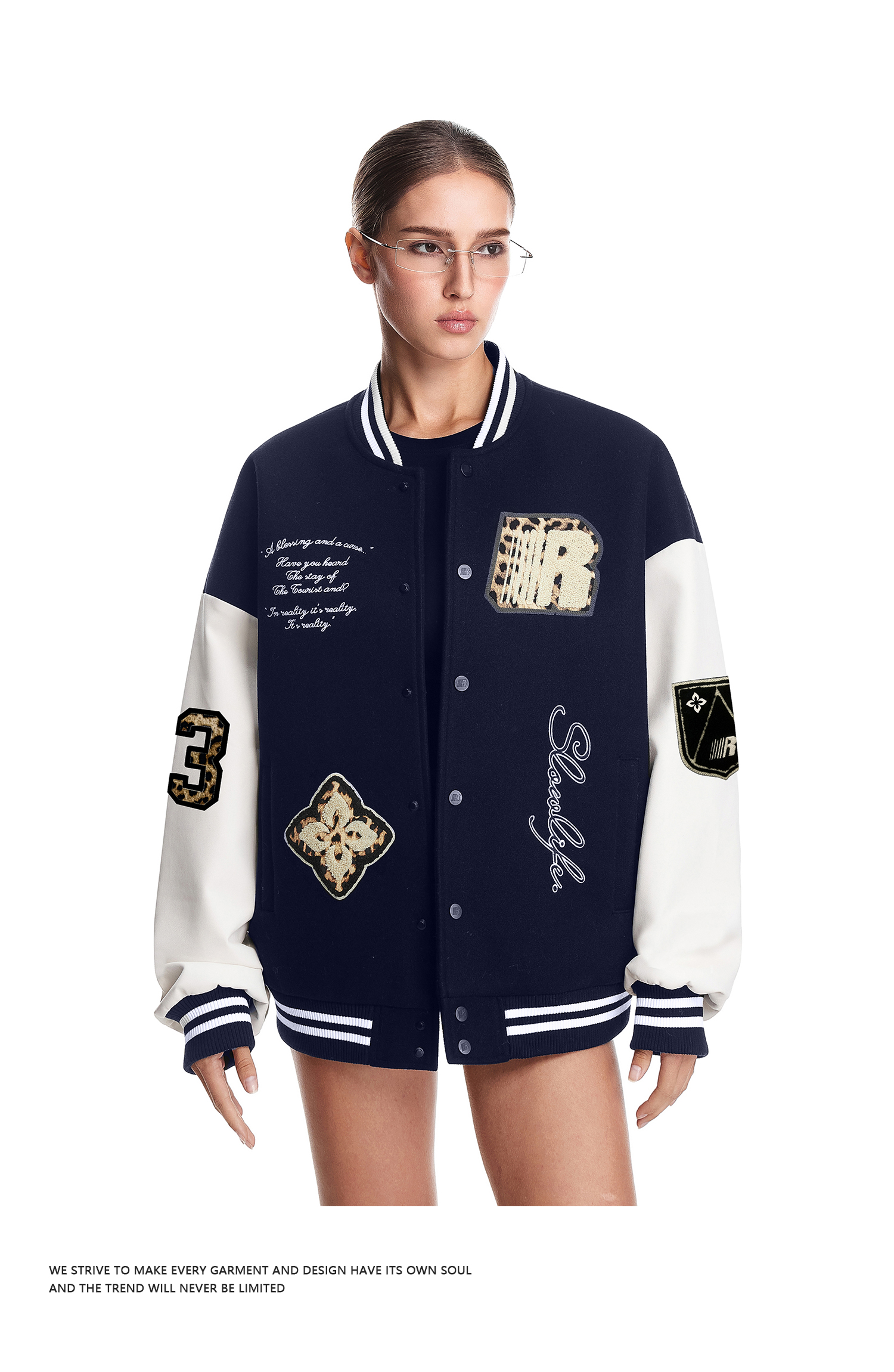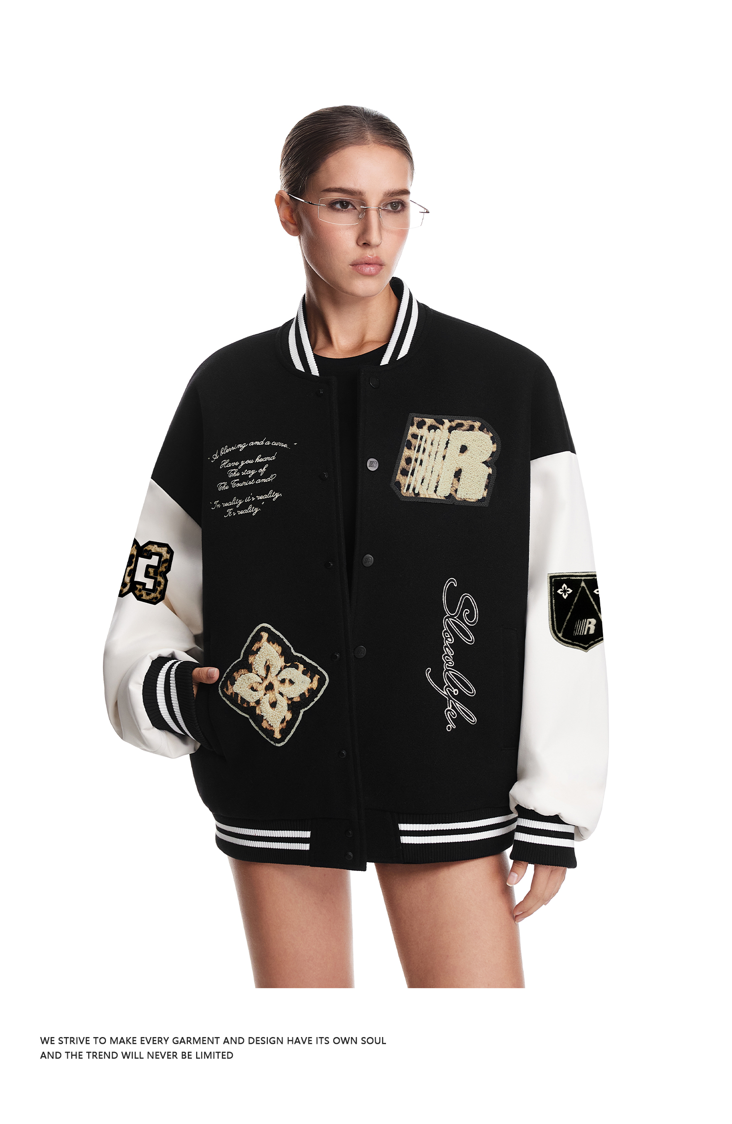 FDR官方店 情侣豹纹贴布夹克男款2025秋季拼接撞色棒球服外套女