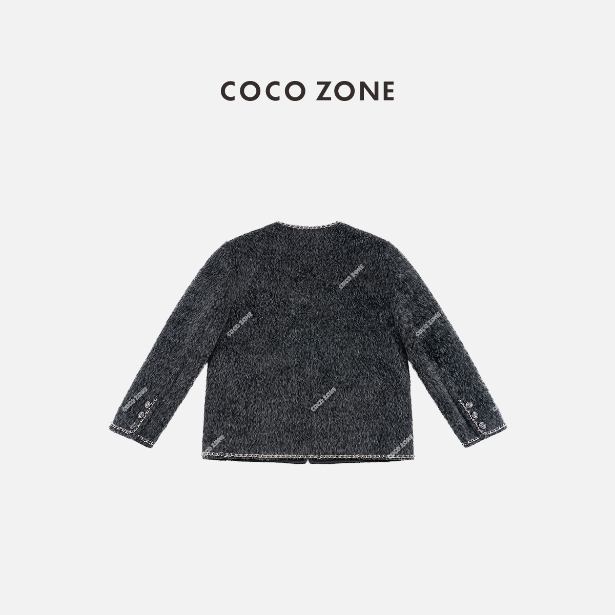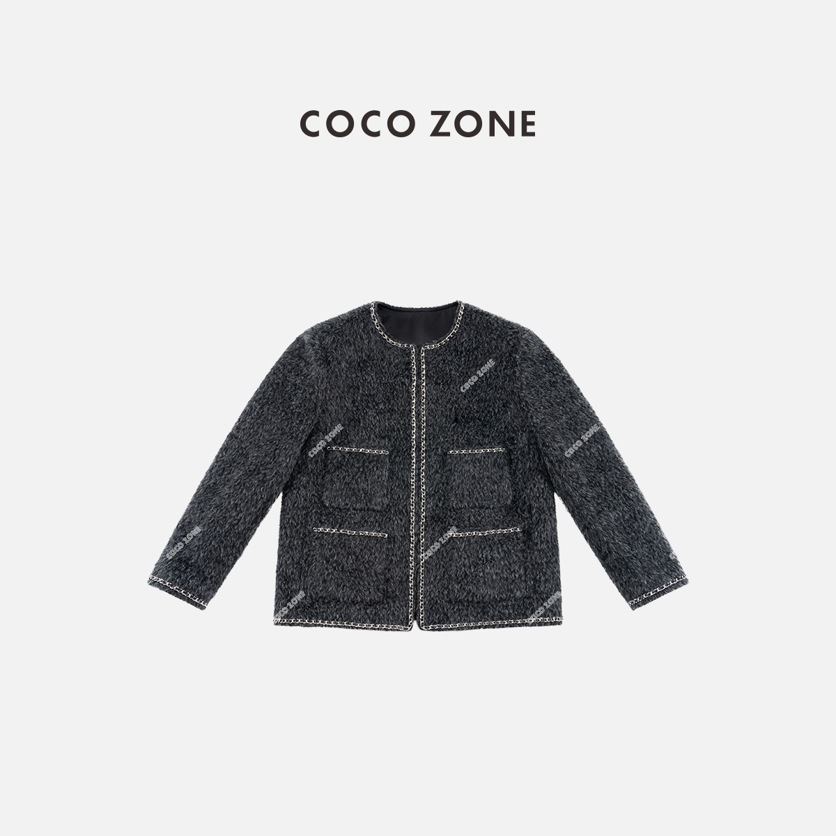 COCO ZONE 冬季新款小香风撞色边气质圆领外套CC2D3303