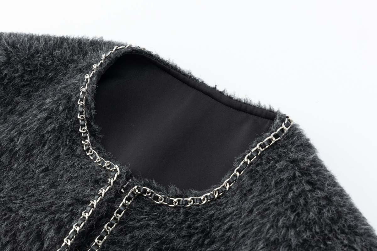 COCO ZONE 刘 一一”白雪公主“小立领编织织带软糯外套CD2A2946