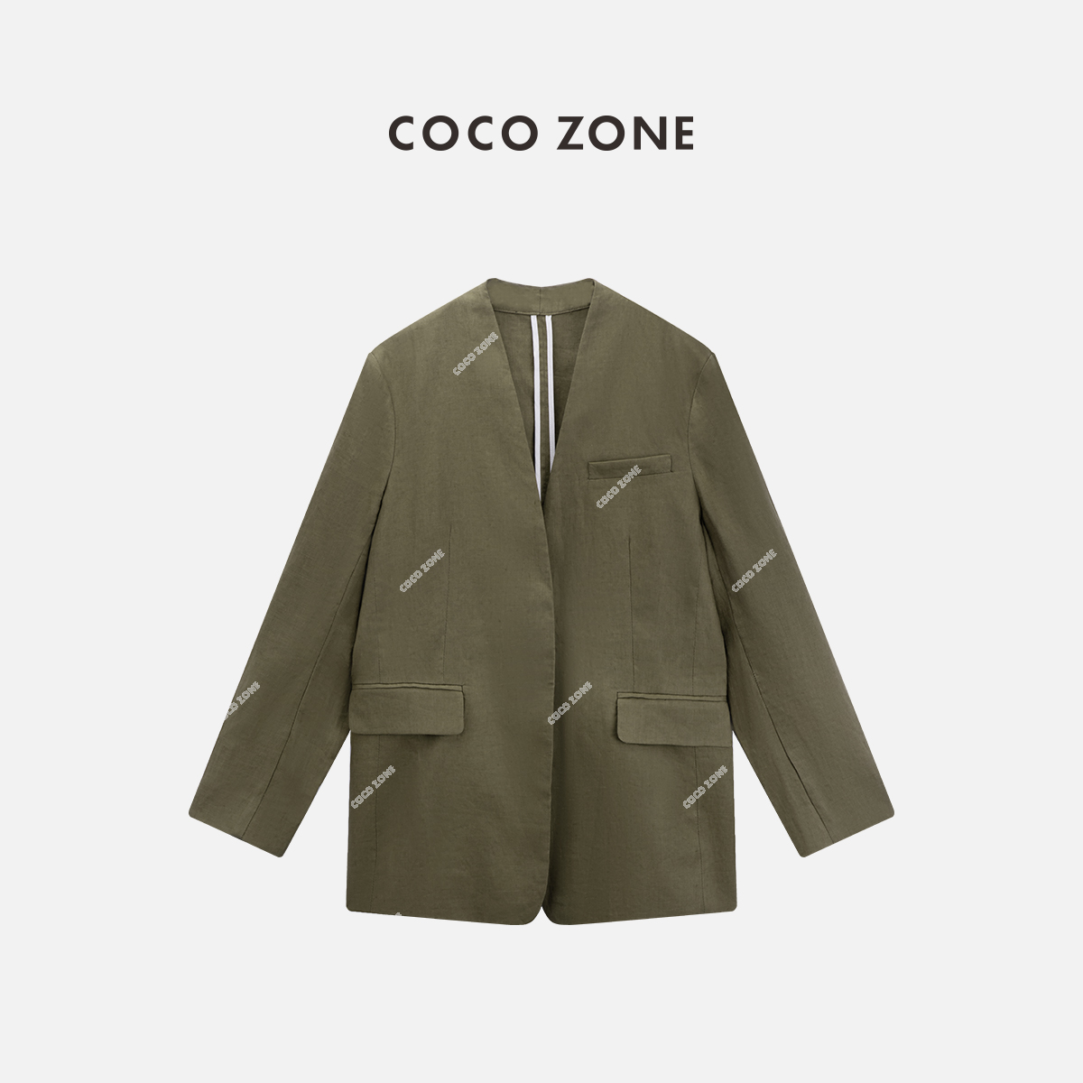 COCO ZONE"绿麻西服"夏季气质简约高级感休闲外套 CC2B0980