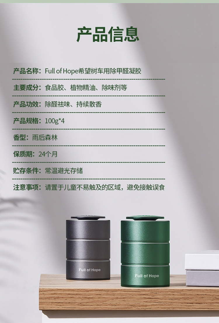 【好物推荐】FOH希望树车载除甲醛凝胶 (100g*4个装)高效净化车内空气 汽车除甲醛