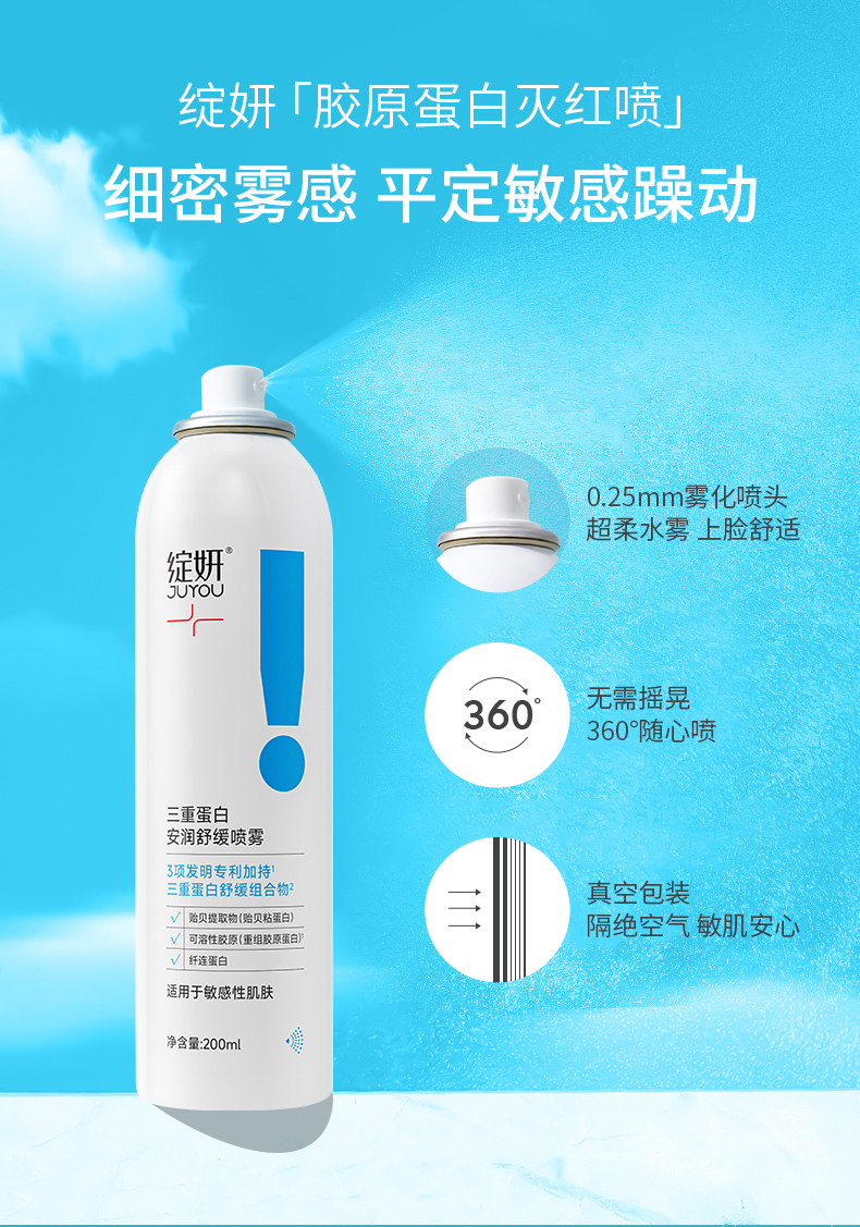 【一喷灭红】绽妍三重蛋白安润舒缓喷雾200ml 一瓶缓解红敏危机