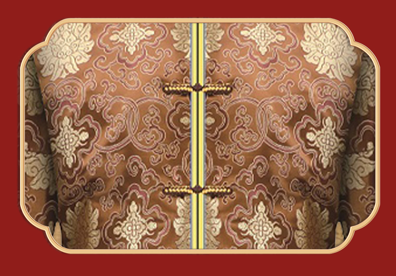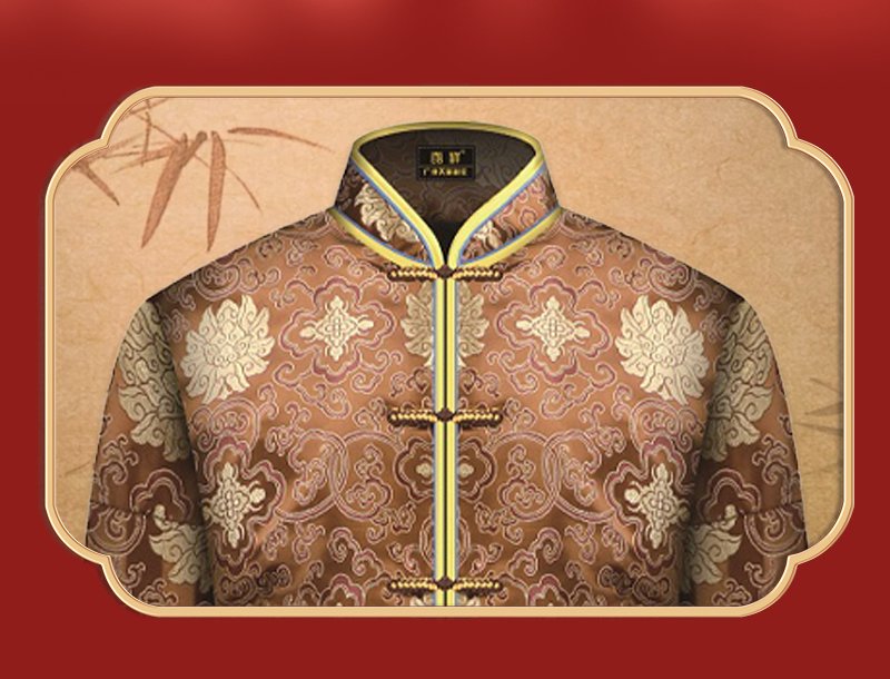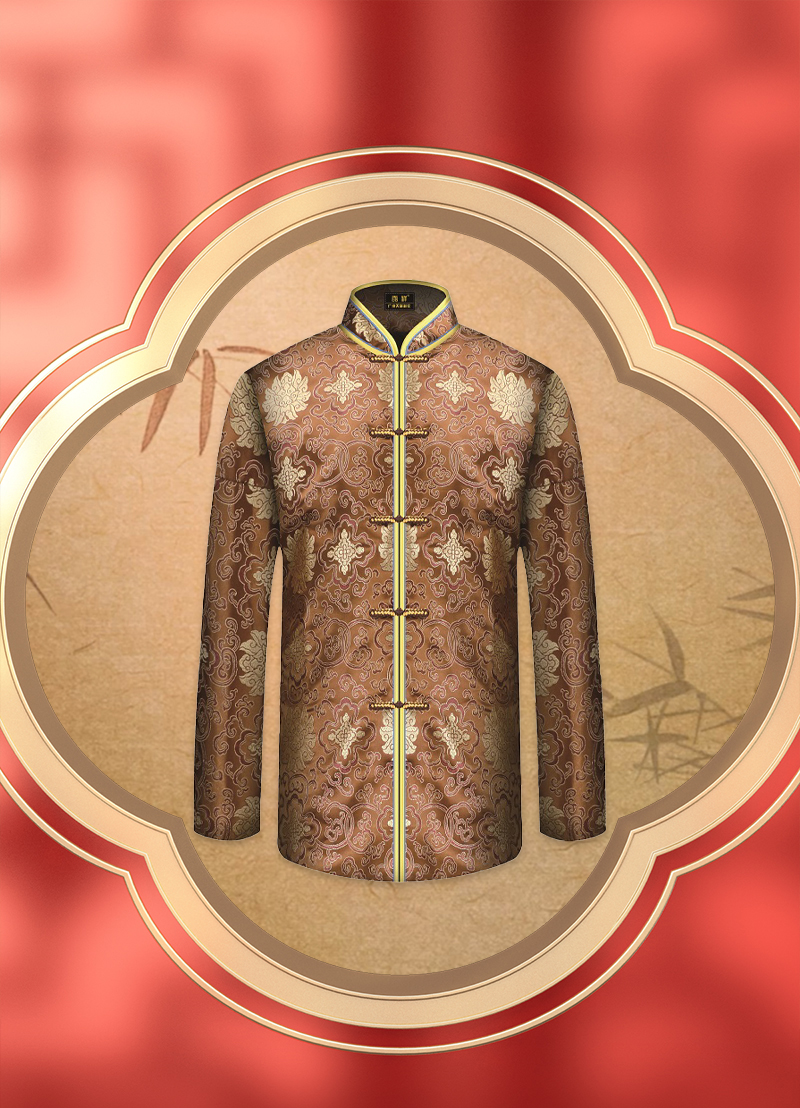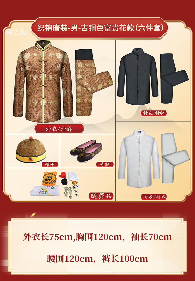 男士薄款织锦唐装古铜色富贵花6件套寿衣寿服套装