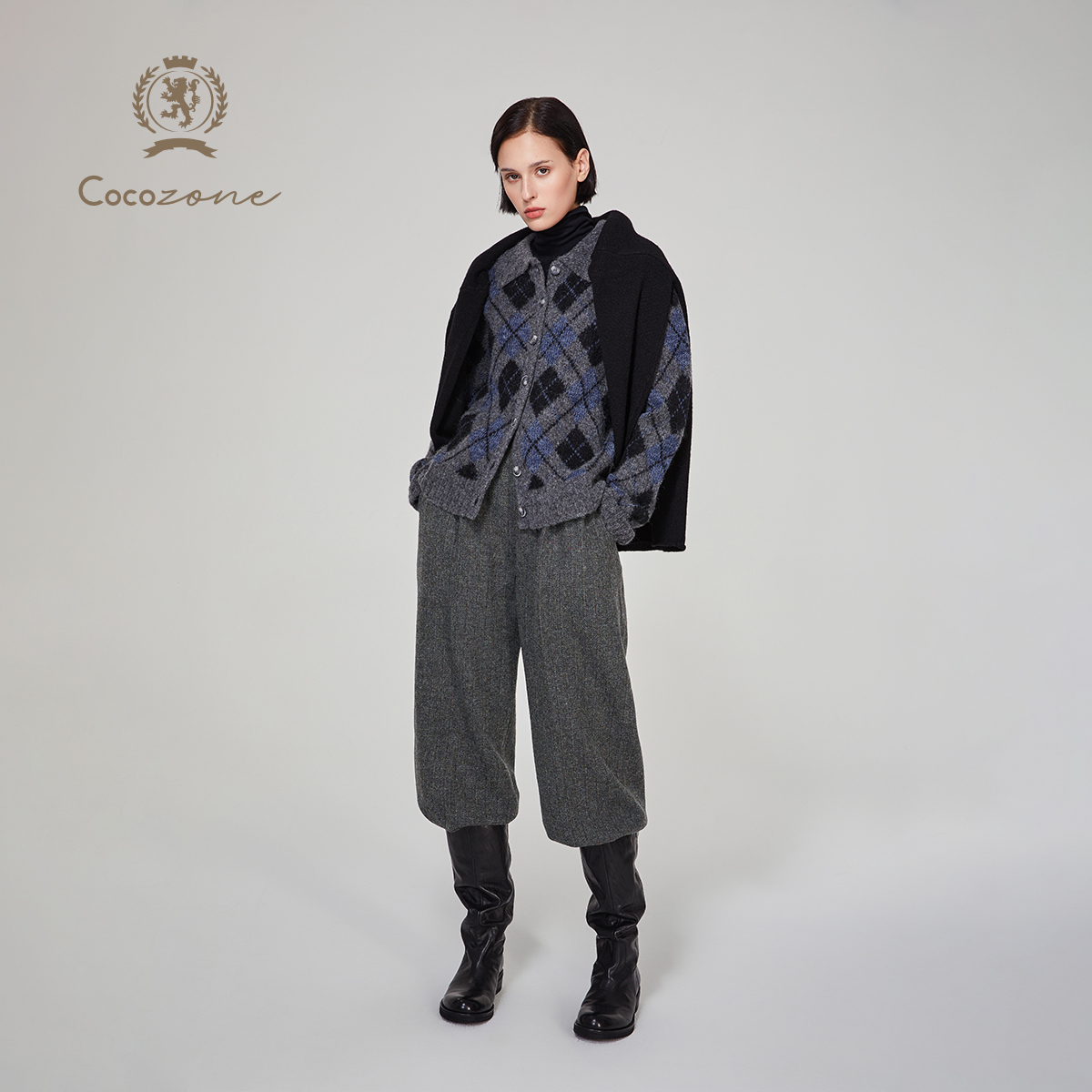 COCO ZONE ”复古老钱“ 菱格polo领针织衫CC1C2266