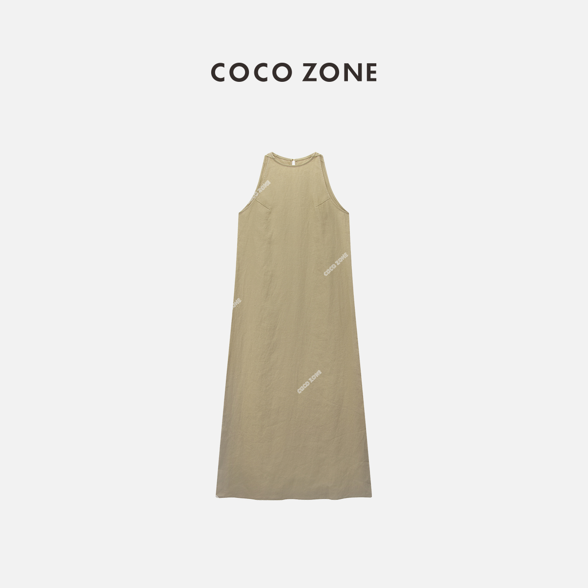COCO ZONE2024“封面裙”夏季纯色挂脖式无袖连衣裙舒适A字长裙CC1B0895