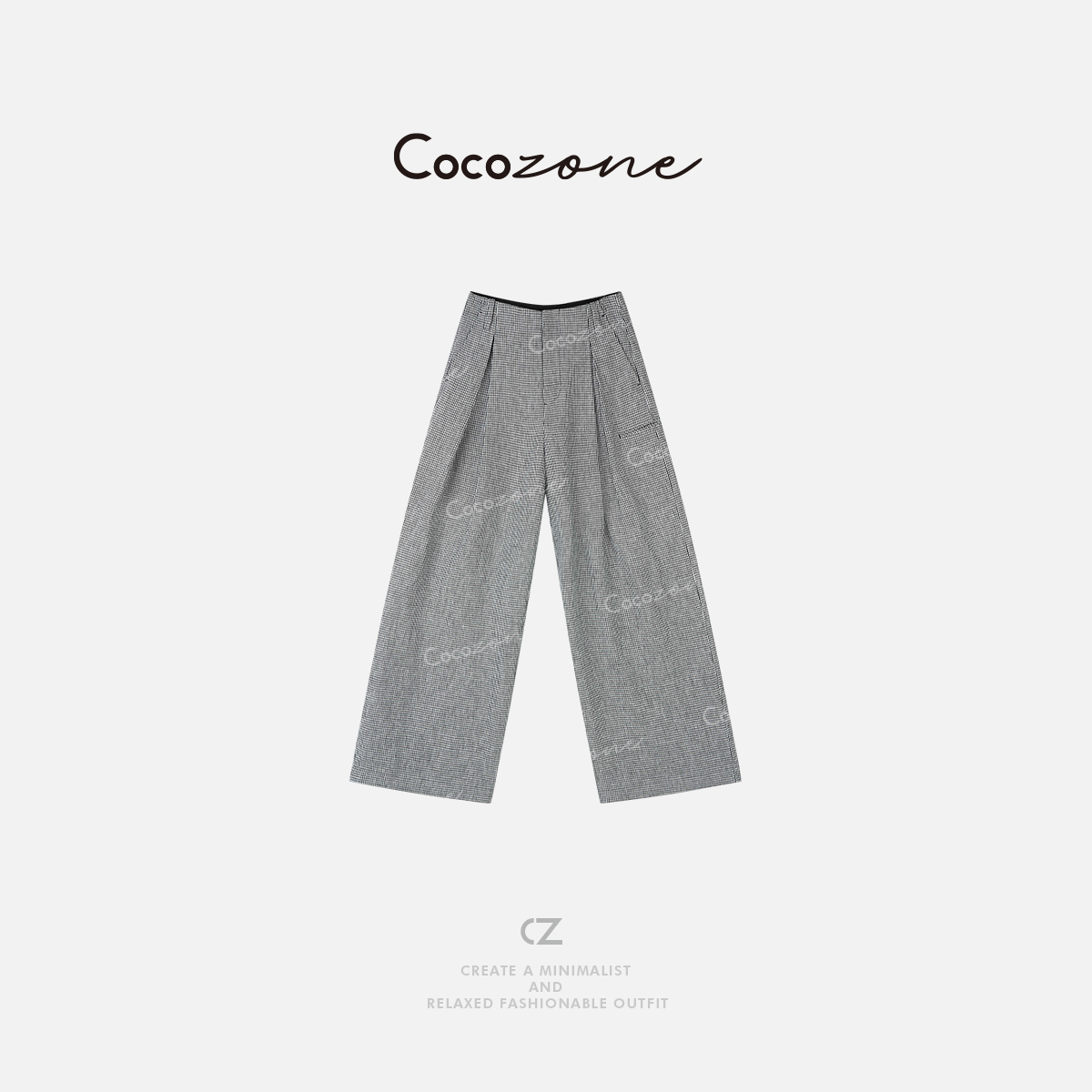 COCO ZONE 25百搭设计感格纹垂感阔腿休闲裤ACD1A0330