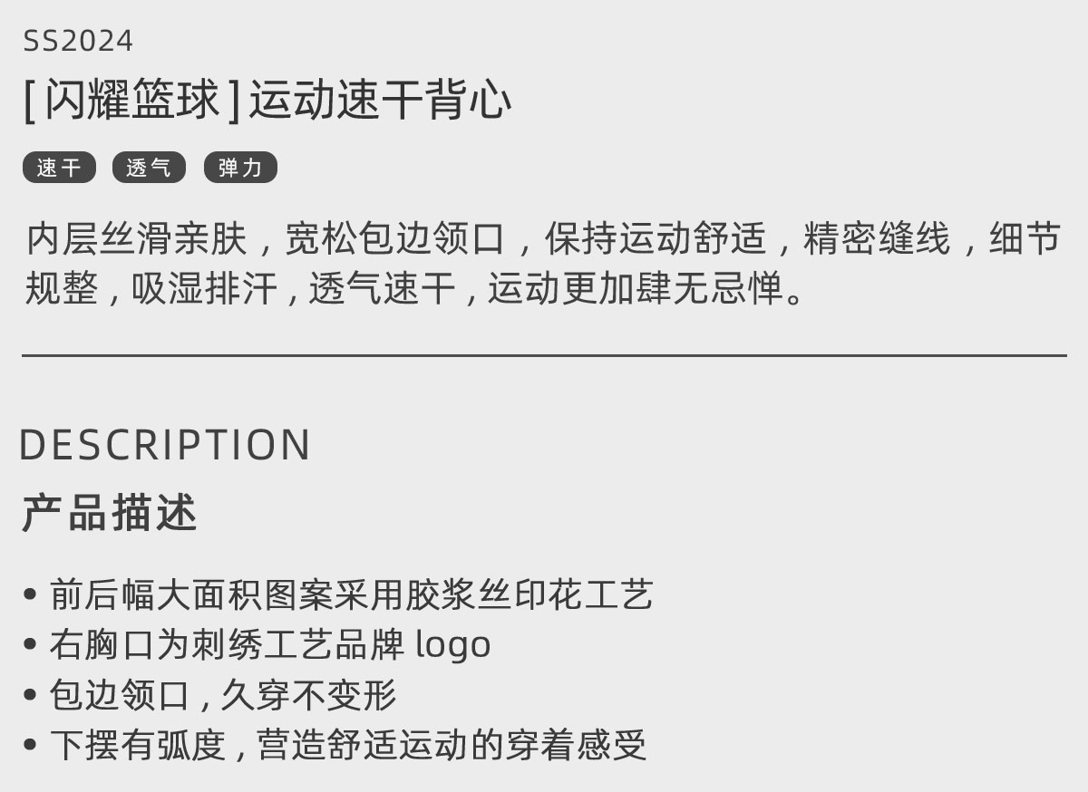 LUSHISI[闪耀篮球]主题跑步健身美式篮球运动背心t恤宽松速干休闲