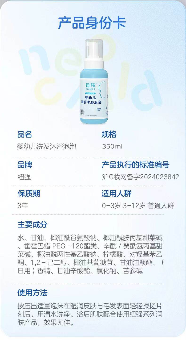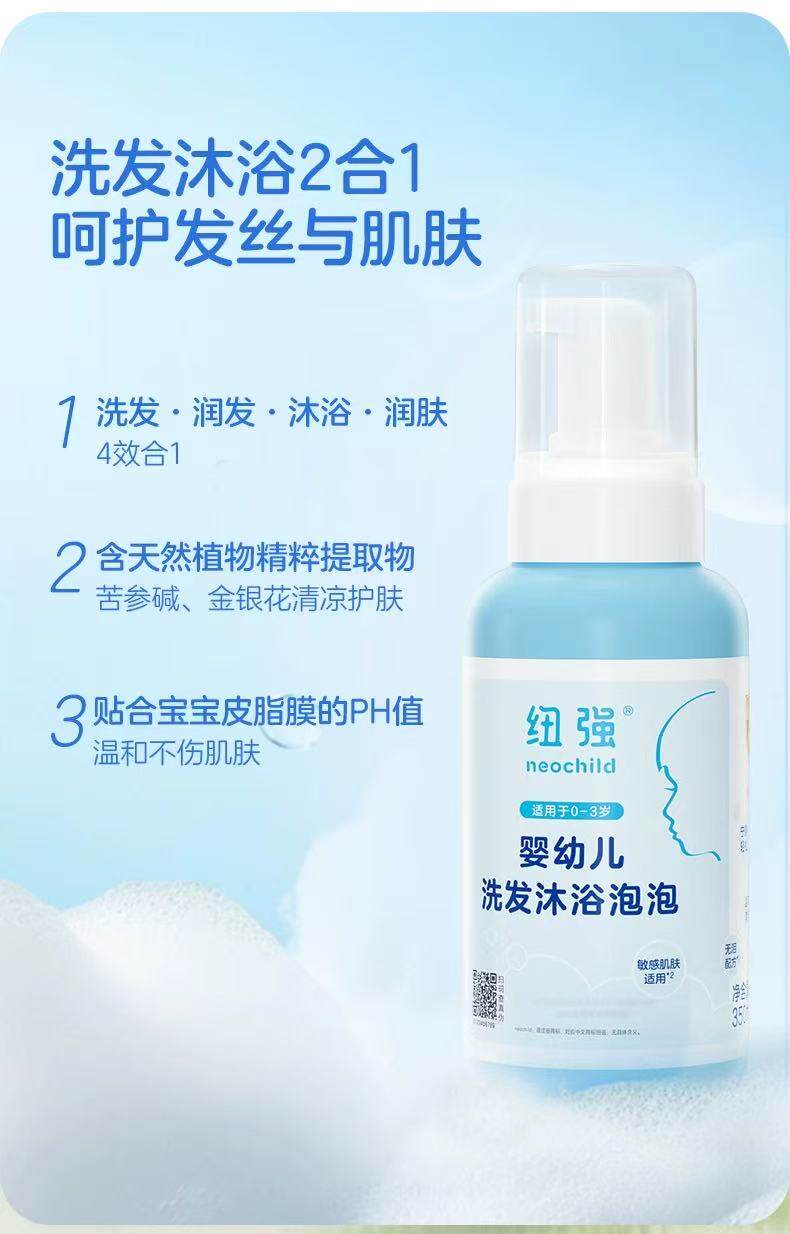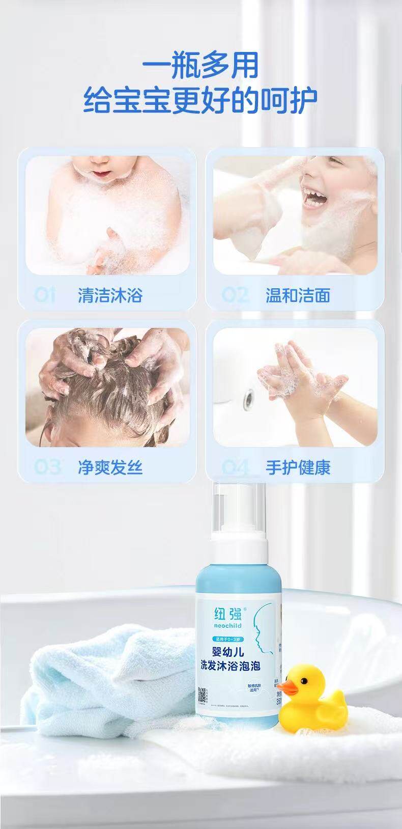 纽强宝宝洗护二合一无泪配方沐浴露洗头洗澡泡泡绵密温和易冲洗