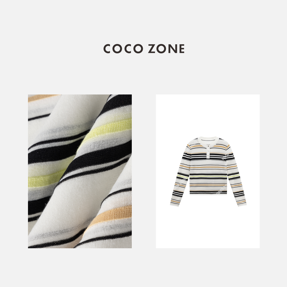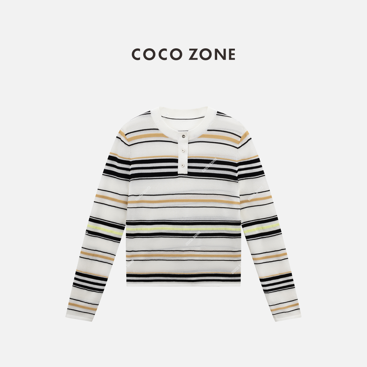 COCO ZONE 时尚条纹圆领针织衫百搭套头长袖上衣CC1B1404
