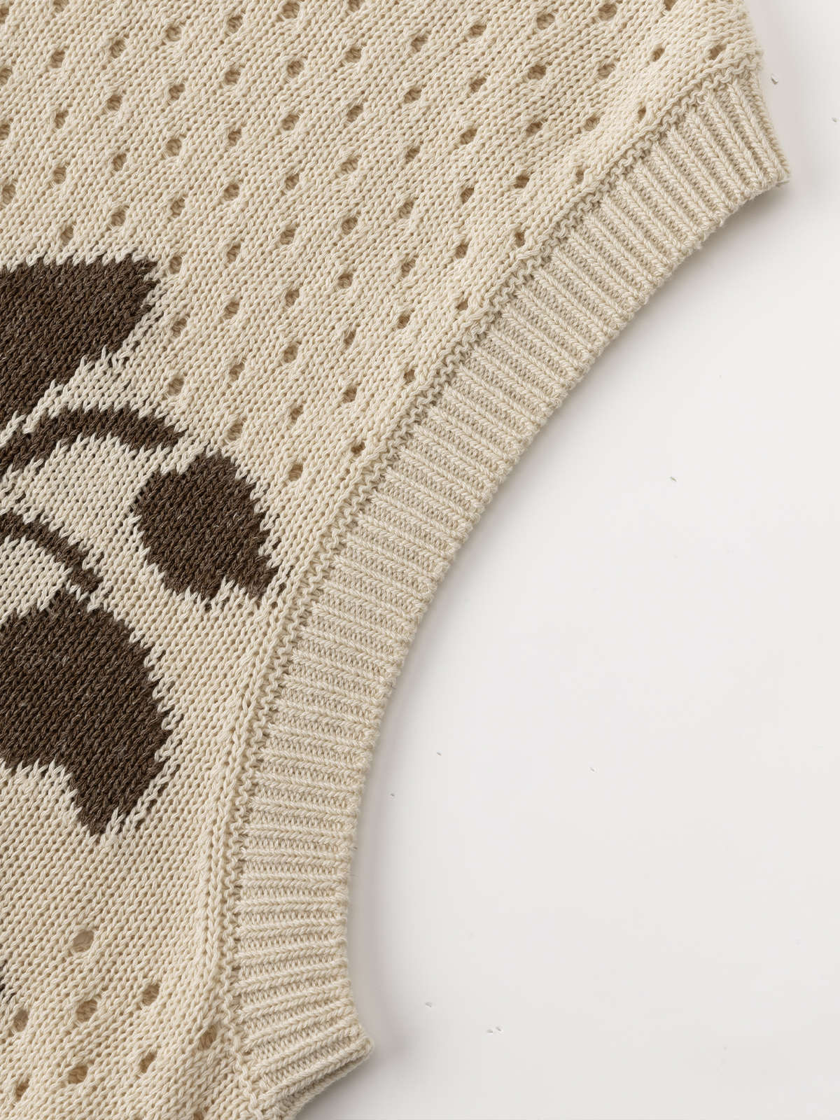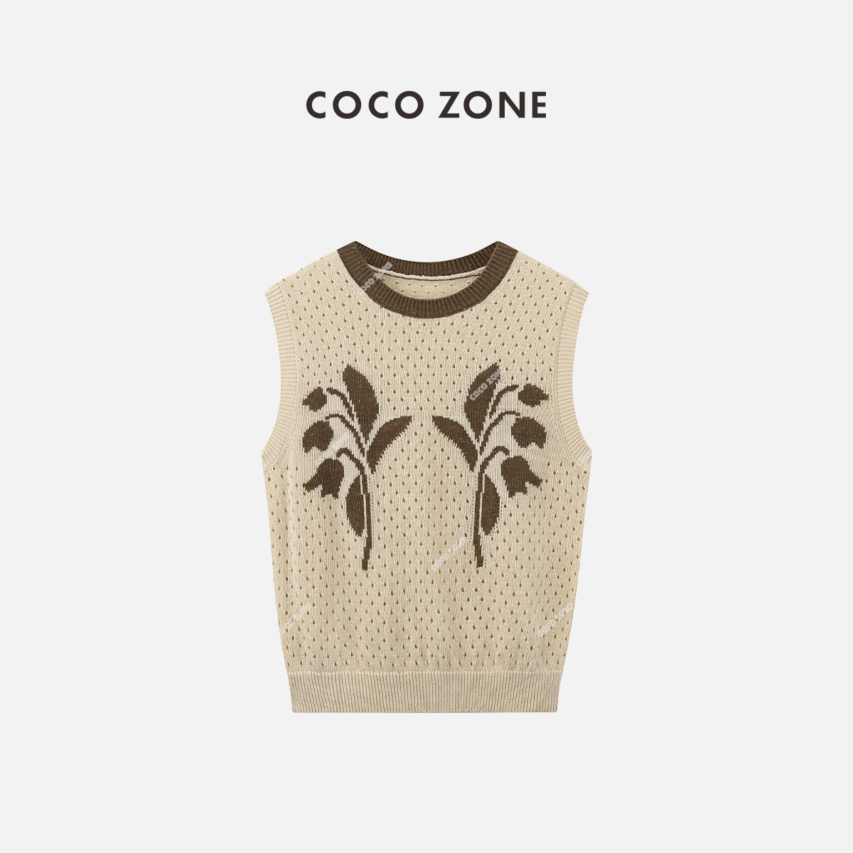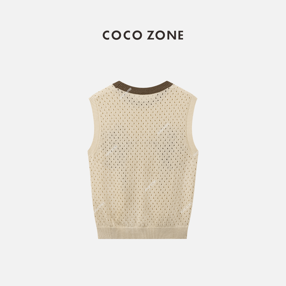 COCO ZONE 设计感镂空无袖针织背心女外穿撞色圆领上衣CC2B0905