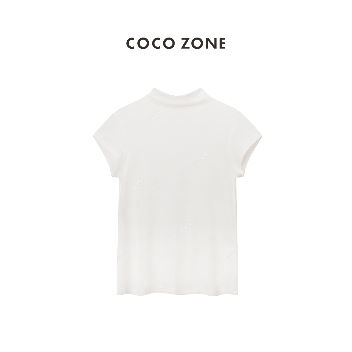 COCO ZONE新款圆领百搭短袖T恤纯色通勤简约上衣CC1A0480