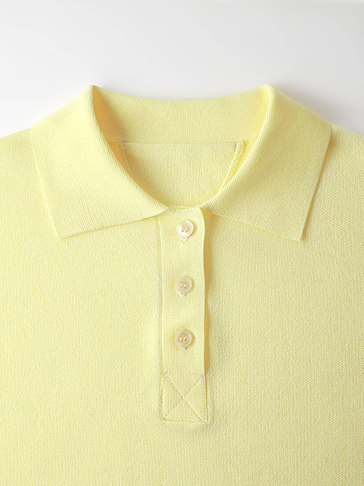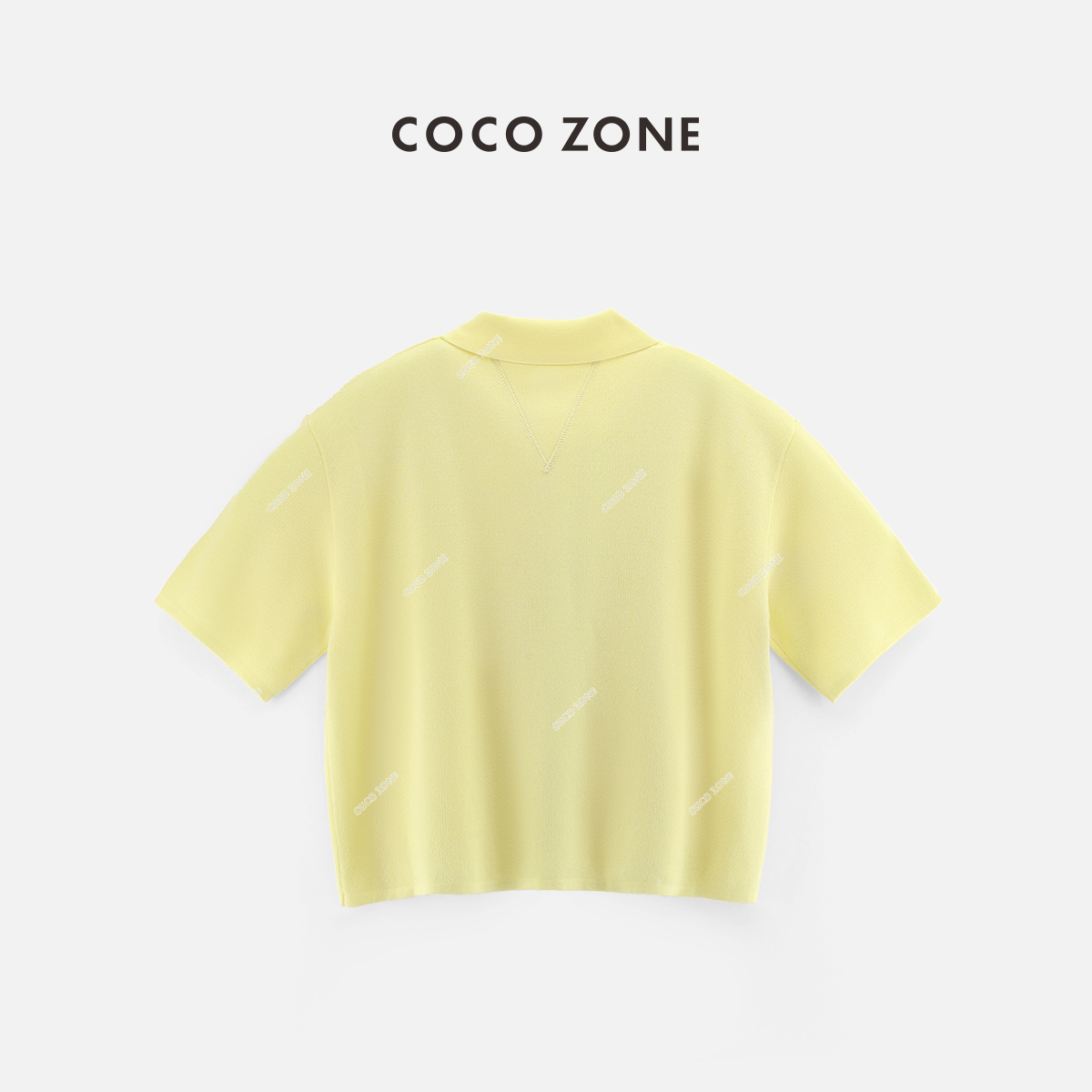 COCO ZONE针织衫温柔风POLO领莱赛尔简约翻领短袖上衣CC1A0403