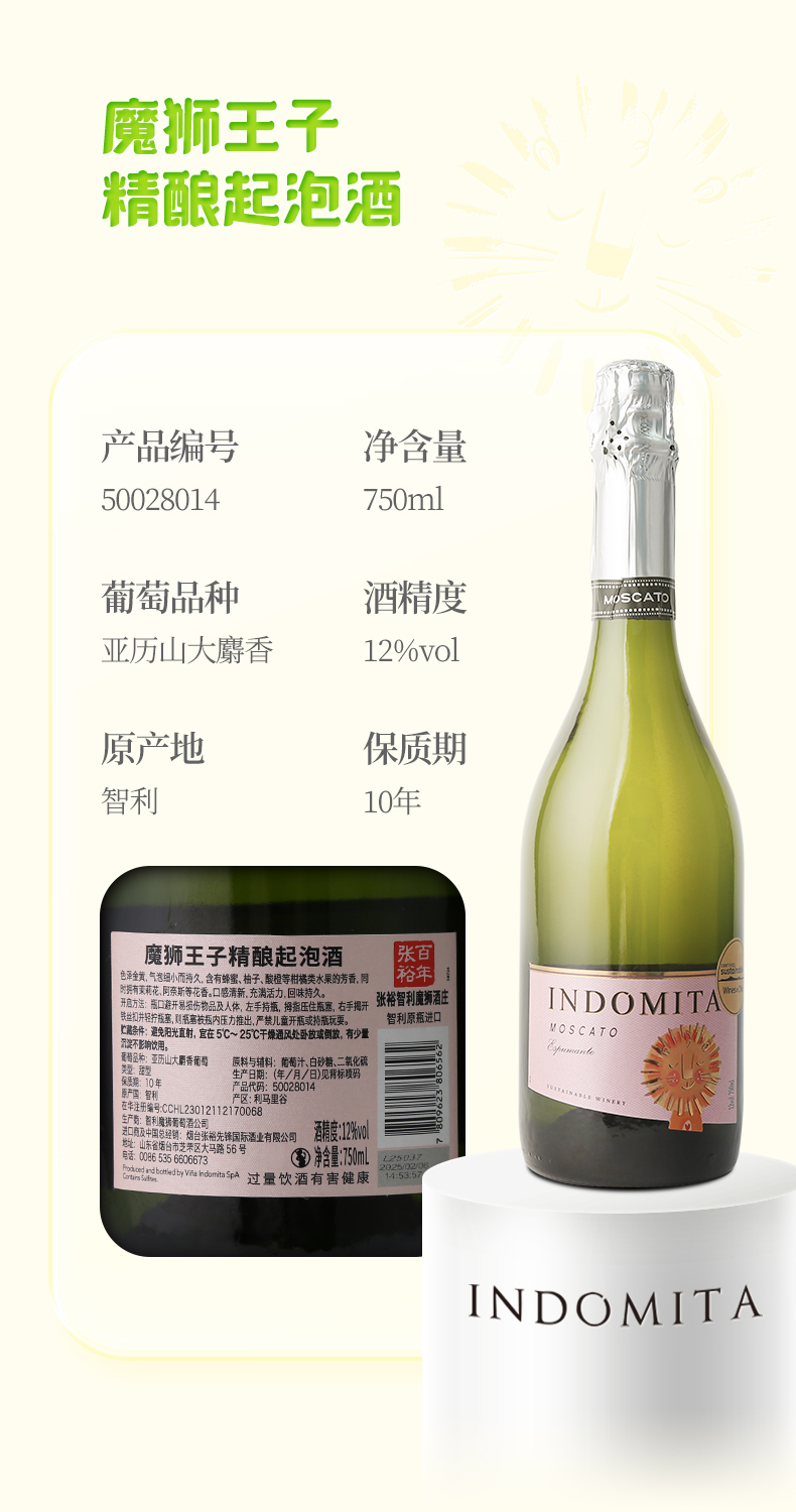 智利原瓶进口魔狮王子精酿香槟/起泡葡萄酒