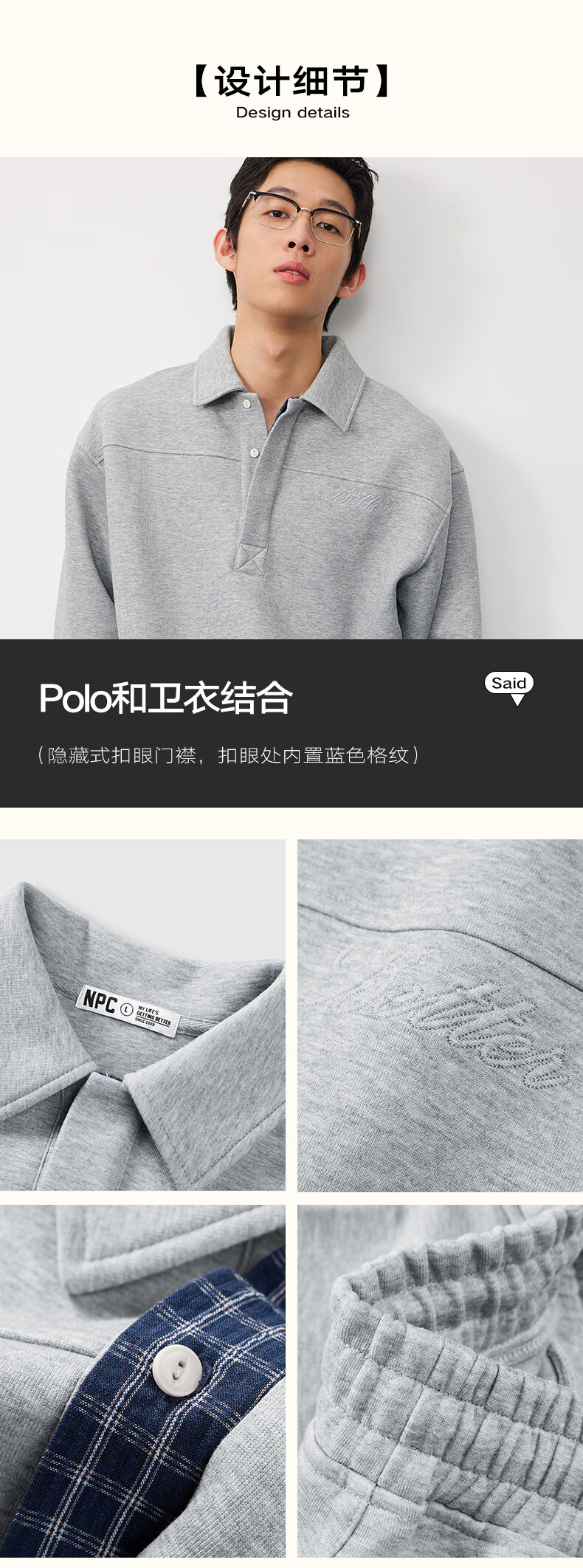 NPC潮牌重磅430G磨毛撞色钉珠翻领拉链衫男休闲外套长袖NP49TJ18