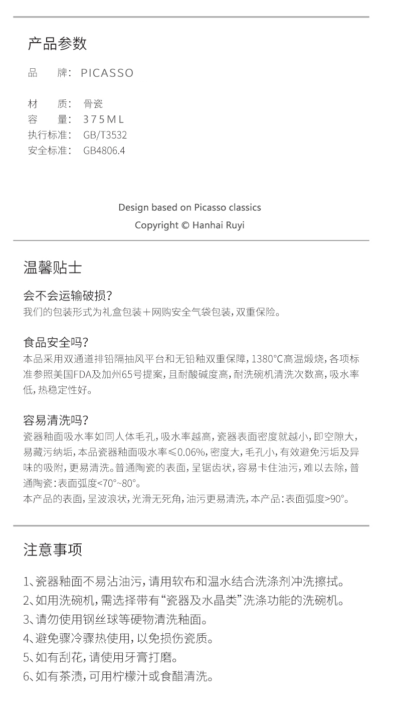 毕加索骨瓷艺术马克杯1人