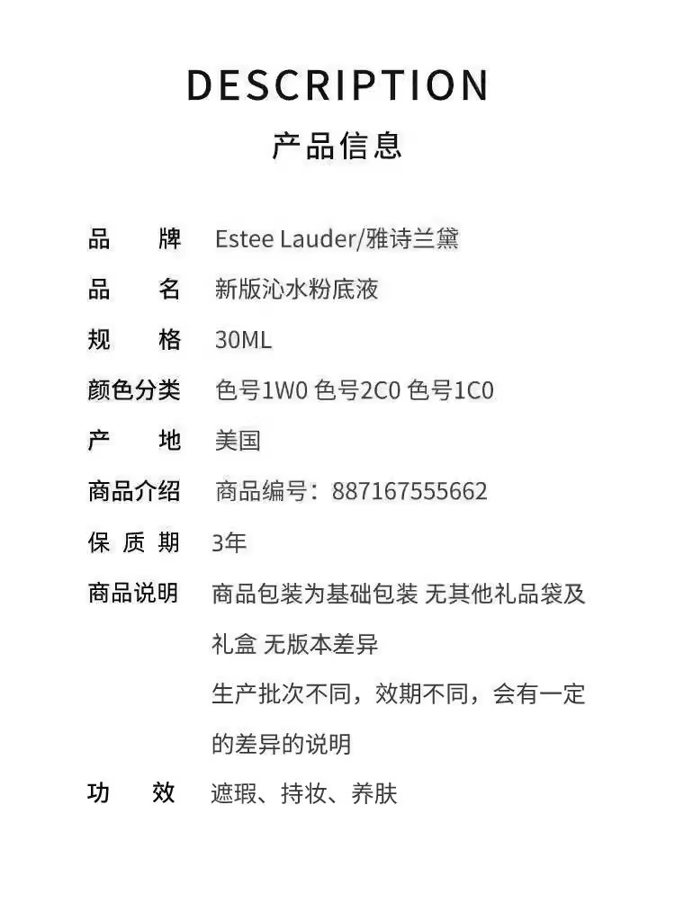 雅诗兰黛沁水粉底液干皮救星沁润新版30ml【下单前请询问色号有没有货】(注:美妆为特殊商品,下单后不支持退货)