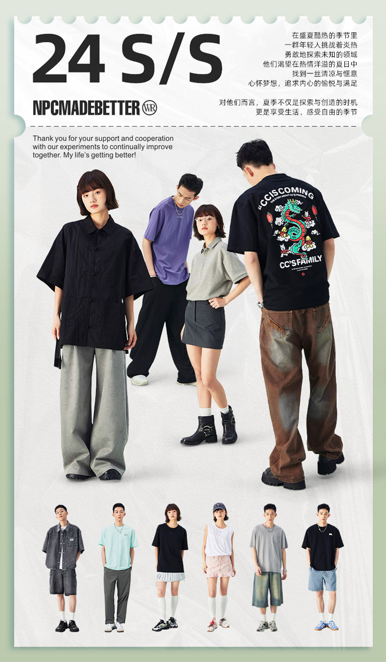 NPC潮牌宽松简约纯色圆领短袖T恤绵羊毛混纺男女春夏上新NP61TE33