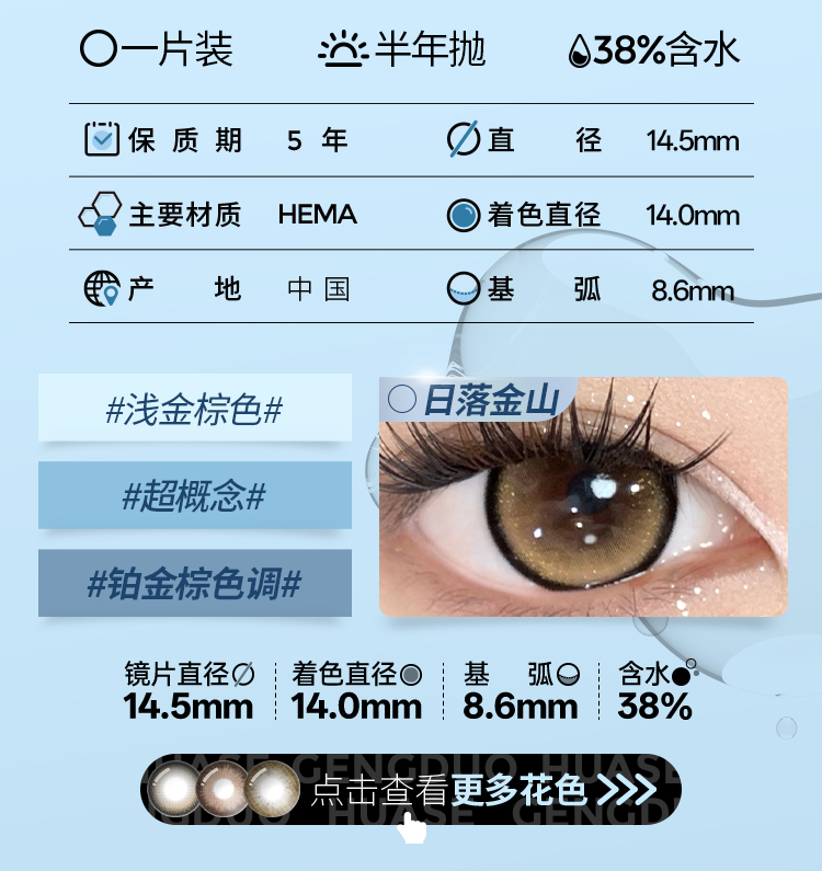 新款【日落金山】14.5大直径半年抛美瞳1片装