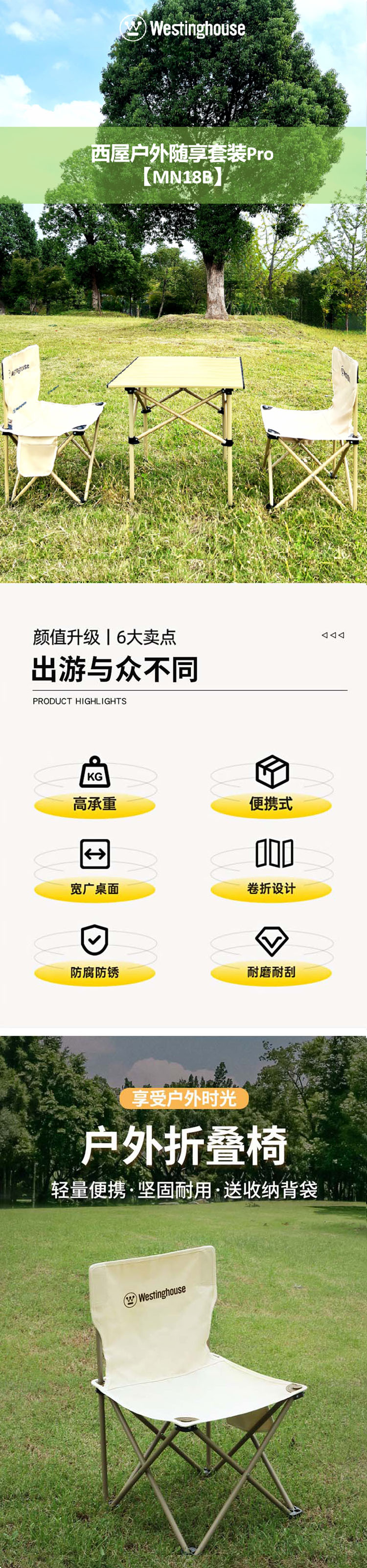 Westinghouse西屋户外随享一桌两椅三件套装Pro【MN18B】