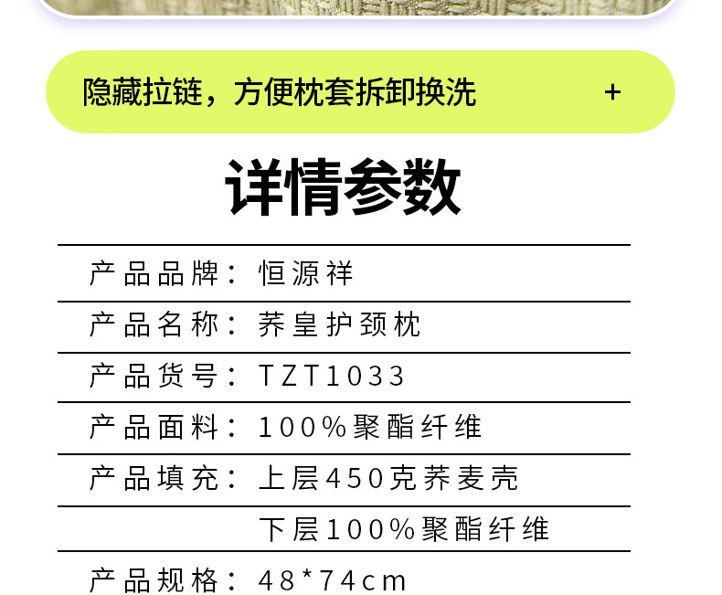 恒源祥 TZT1033 荞皇护颈枕 48*74cm 单位:床