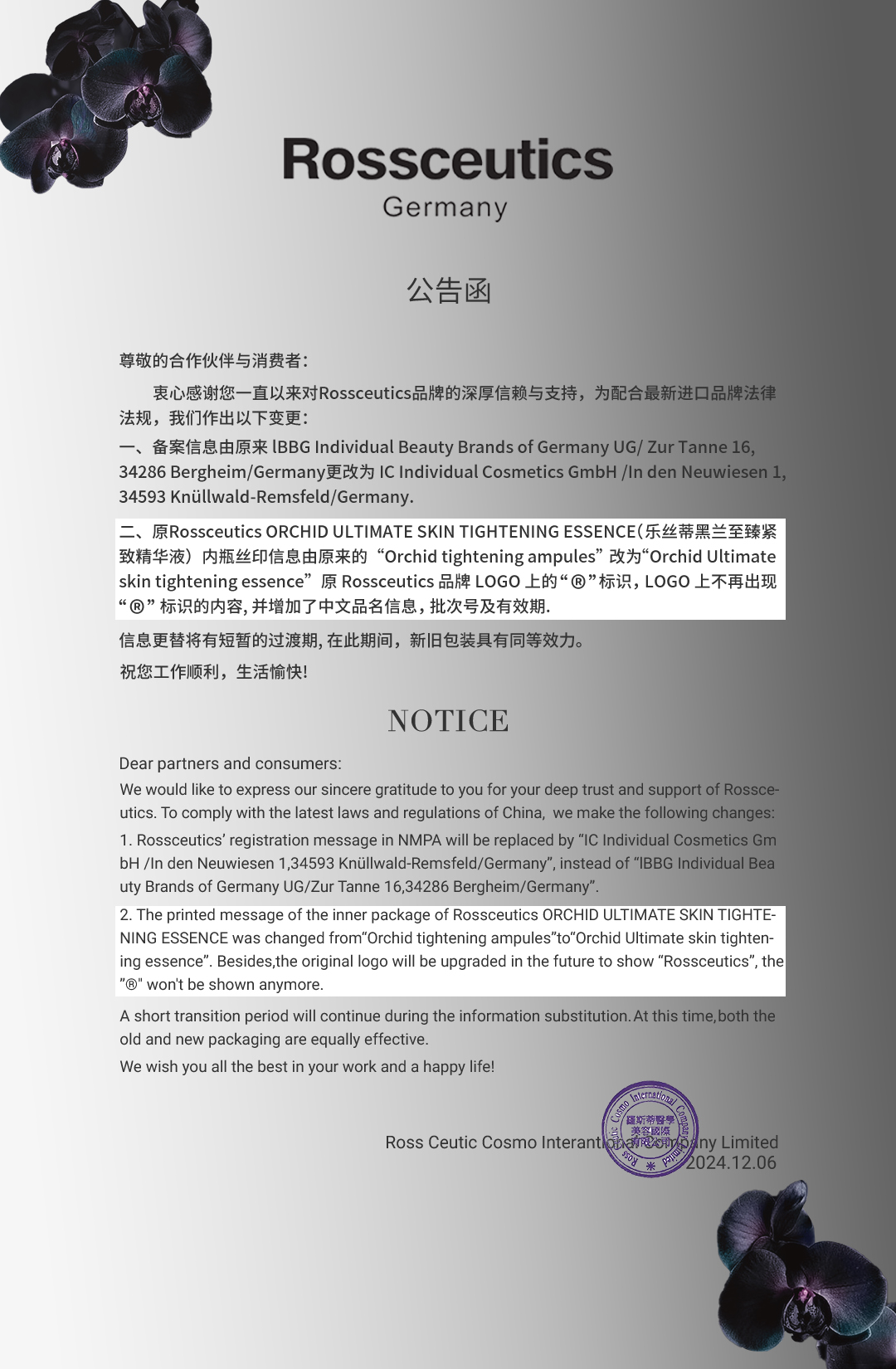 德国Rossceutics乐丝蒂黑兰至臻紧致精华液2ml*10支