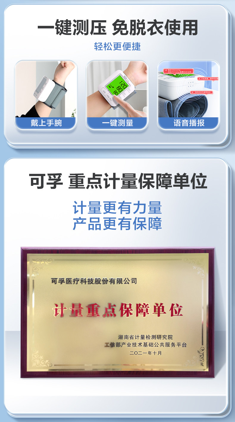 可孚医用电子血压计手腕式测量仪高精准家用血压仪自动测量血压表