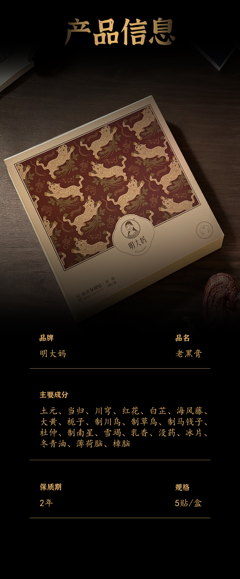 【包装升级】老黑膏5贴/盒 颈肩 腰腿 通用 精华养护加厚温和 草本萃取