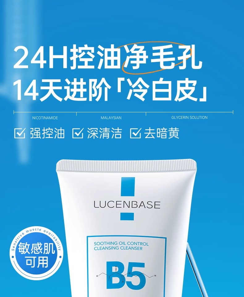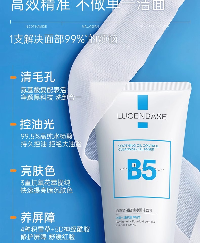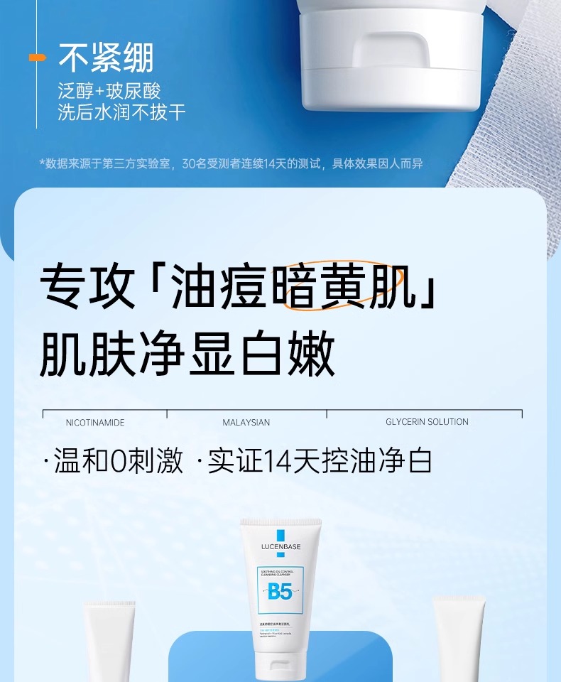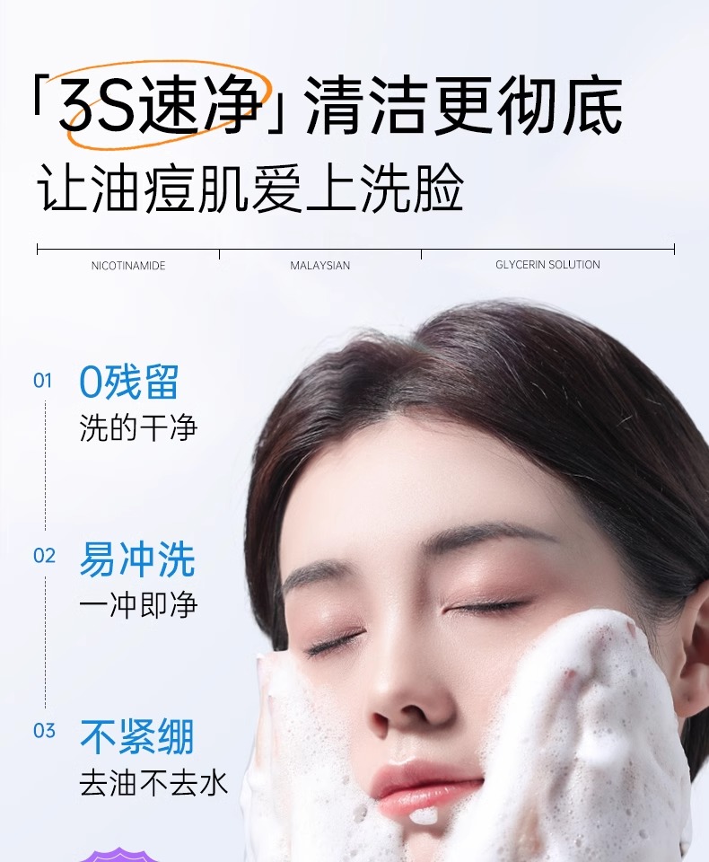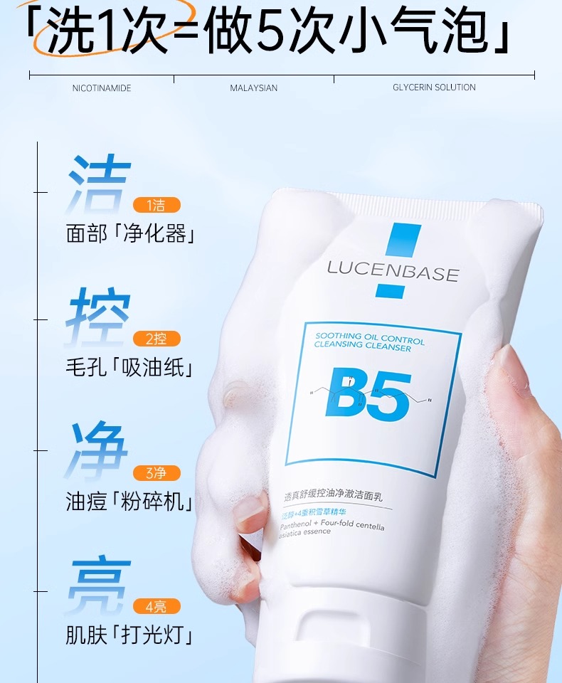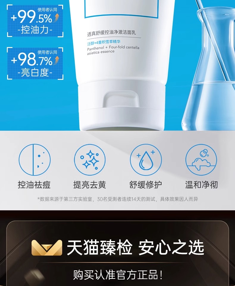 【3min控油清毛孔】舒缓控油净澈洁面乳150g#B5氨基酸洗面奶女深层清洁收缩毛孔控油祛痘去黑头男士专用洁面乳