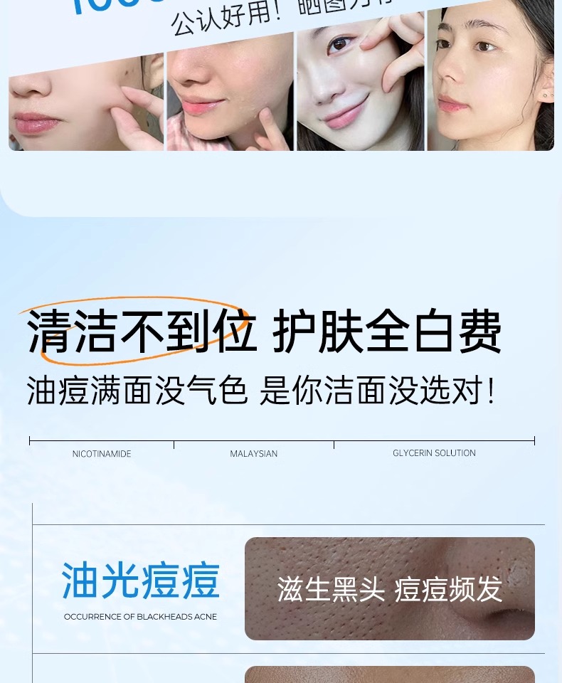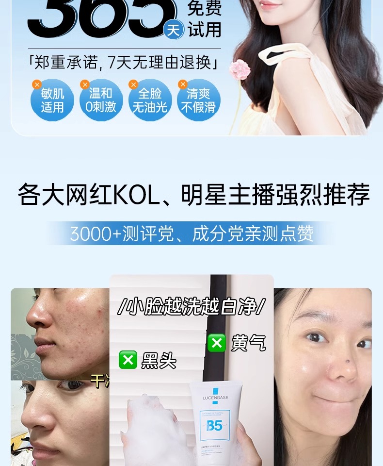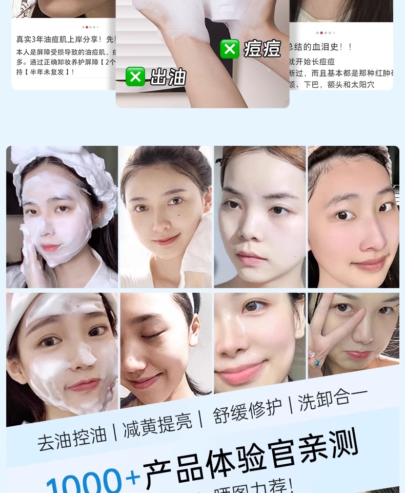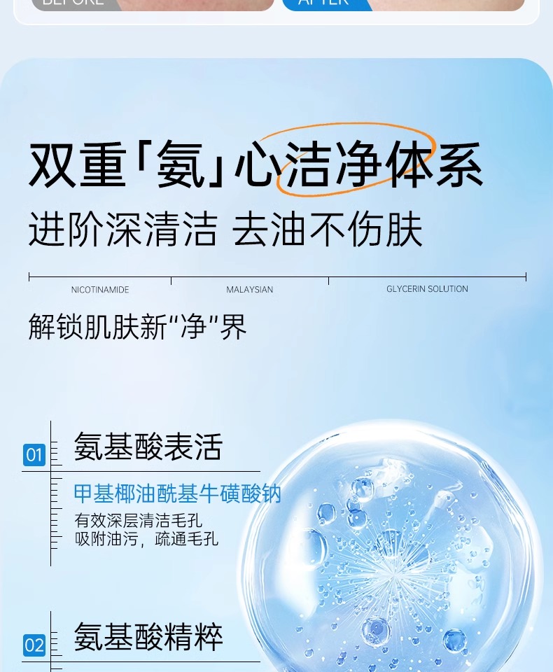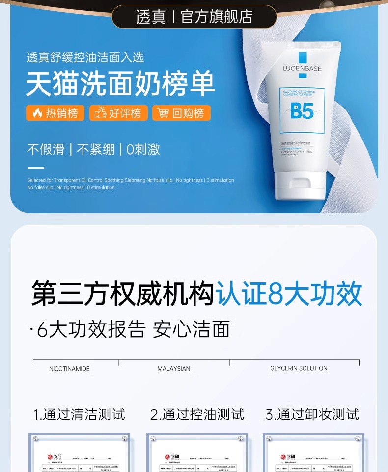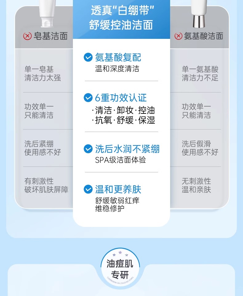 【3min控油清毛孔】舒缓控油净澈洁面乳150g#B5氨基酸洗面奶女深层清洁收缩毛孔控油祛痘去黑头男士专用洁面乳
