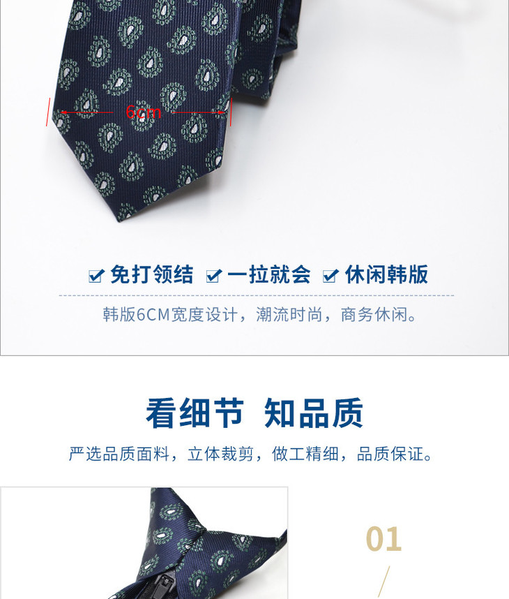 【盒装免打结拉链领带】罗蒙领带男正装休闲上班结婚懒人领带
