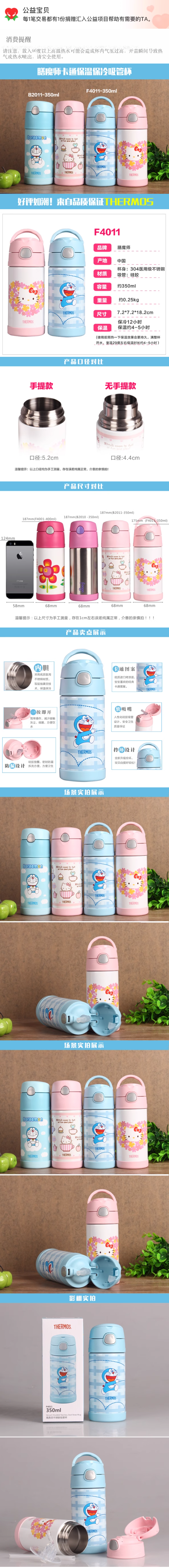 膳魔师儿童保温吸管杯hellokitty魔膳师卡通保温杯宝宝水杯