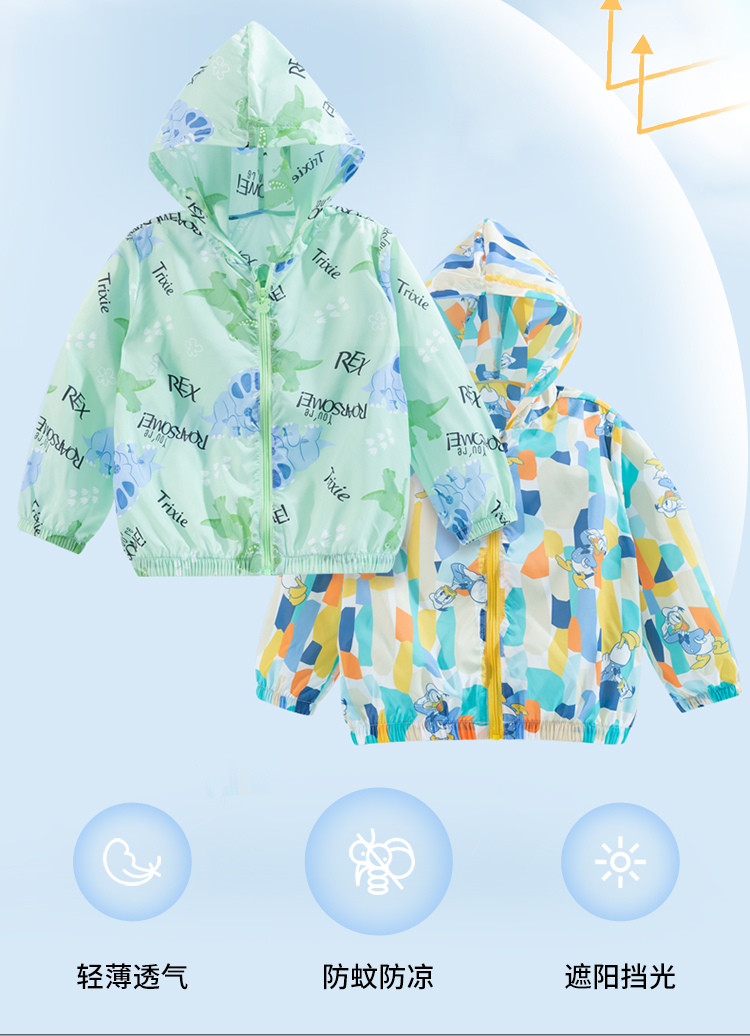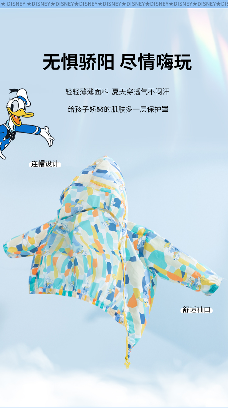 【唐老鸭90周年】迪士尼童装男童夏季防晒衣中小童宝宝唐老鸭恐龙满印洋气皮肤衣