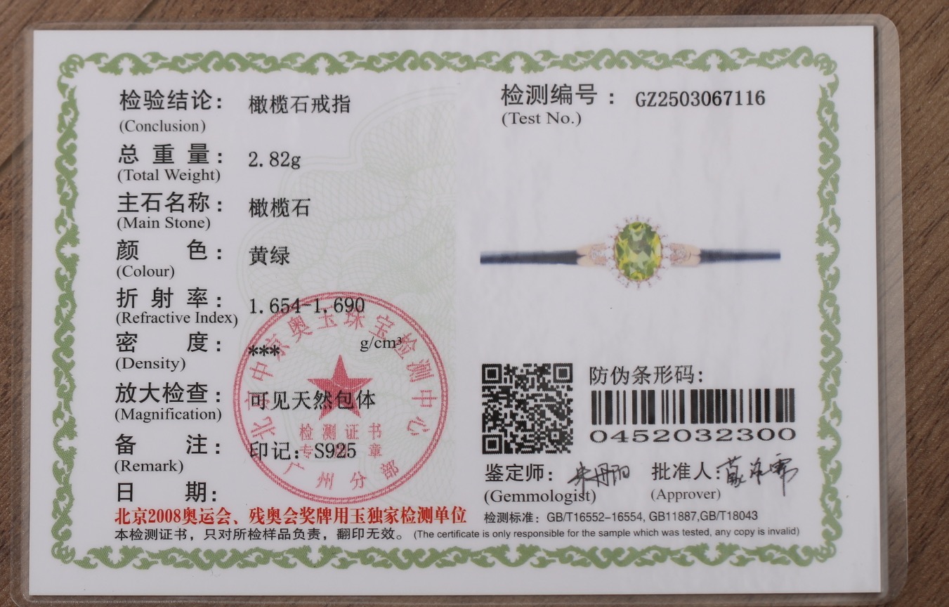 【雨棠】橄榄石戒指,镶嵌:925银镶