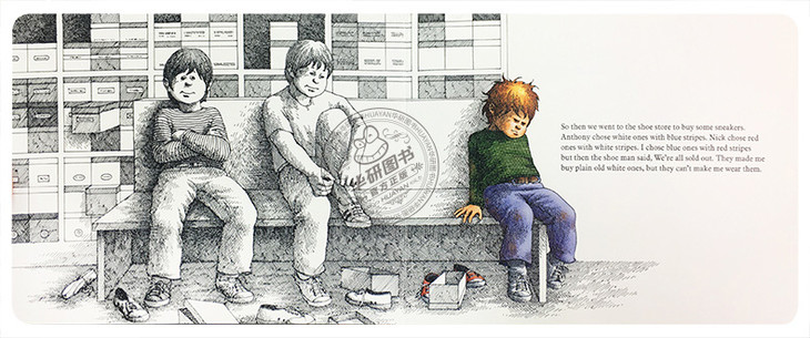 亚历山大是一个普通的小男孩。这一天他过得非常不顺心,早上醒来就发现头上黏着口香糖,然后妈妈忘了给他带午餐甜点,然后好朋友抛弃他,然后……全书都是亚历山大的独白,他讲了一件接一件的倒霉事,不动声色的语言叙述,配上冷冷的黑色线条画,仿佛蕴涵着随时爆发的力量,让故事凸显不一般的张力,引起孩子们强烈的共鸣。后来妈妈冷静客观的安慰,也是一种直面现实的力量,让孩子了解自己的情绪,学会与真正的生活和解。