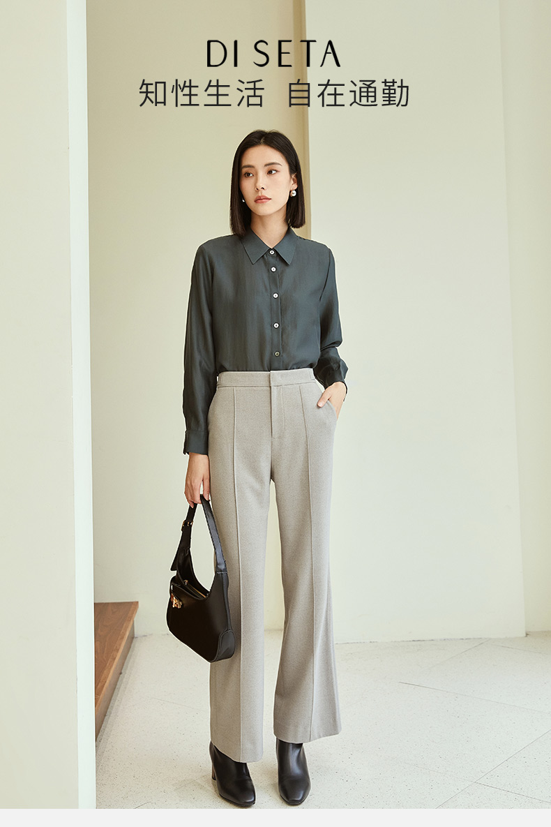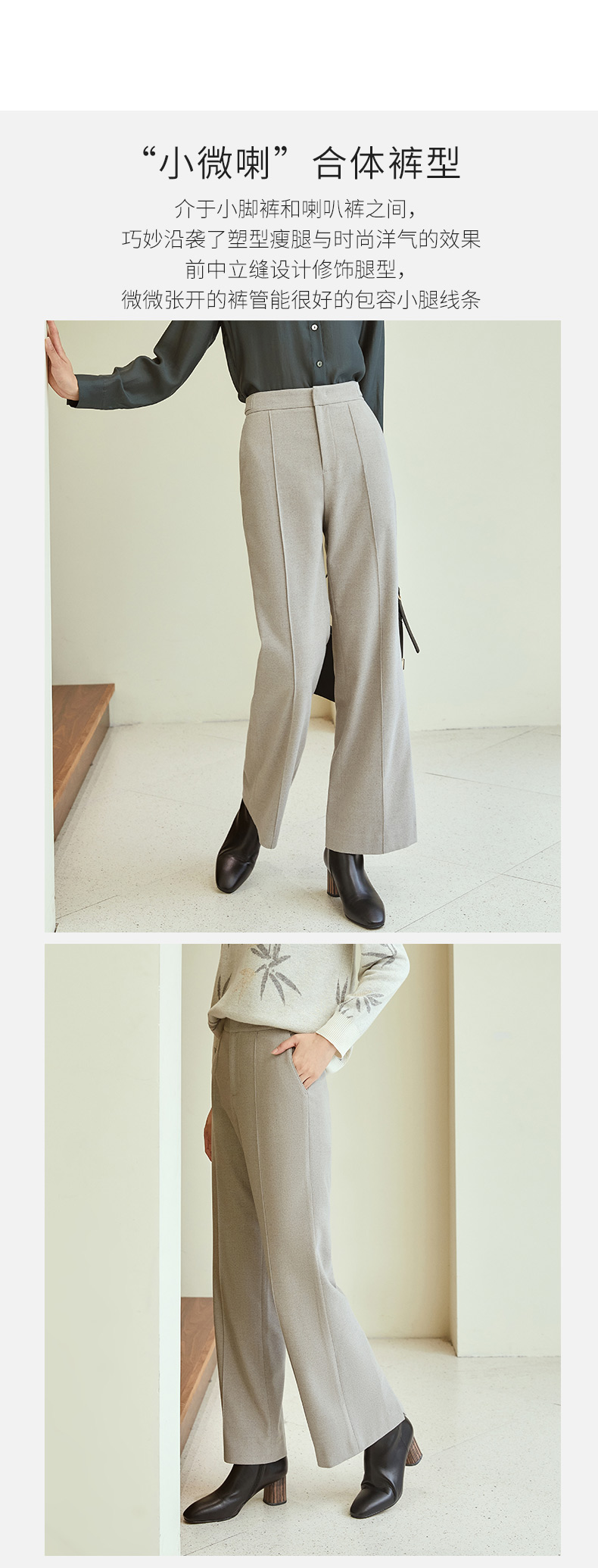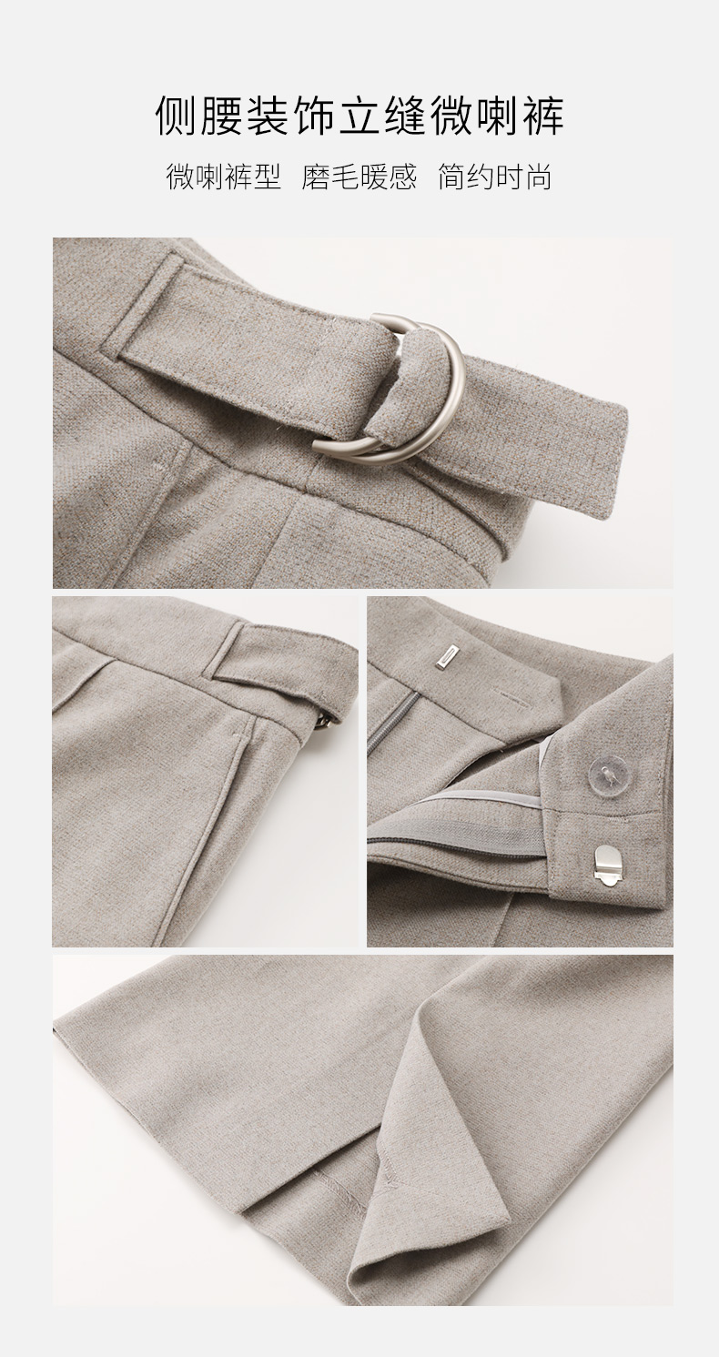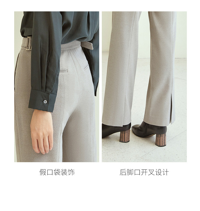 玳莎通勤开叉微喇西装裤女秋冬新款设计感磨毛保暖垂感休闲裤 DD36306