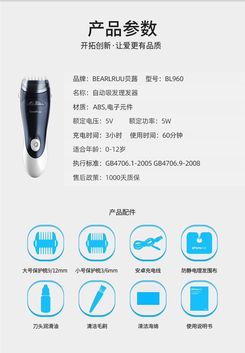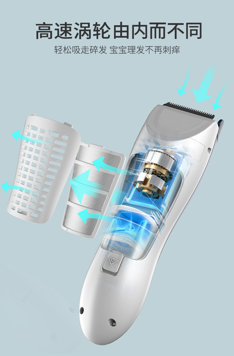 【瞬吸碎发 一净到底】贝蕗婴儿吸发低音静音理发器宝宝新生剃头儿童剪发器发电剃头推子