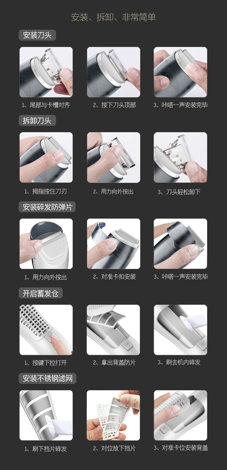 1.亲,我们这款产品在使用前请确保电量充足,电量不足的情况会导致刀头动力不足,剪切力下降,有可能会导致卡发的情况。所以使用前请先打开开关观察动力是否足够,如果动力不足请充电后再使用。2.使用后请定期清理刀头内的头发,到头内头发累积太多,或者里面卷进去的长头发太多也会影响刀头动力,可能导致卡发现象。
