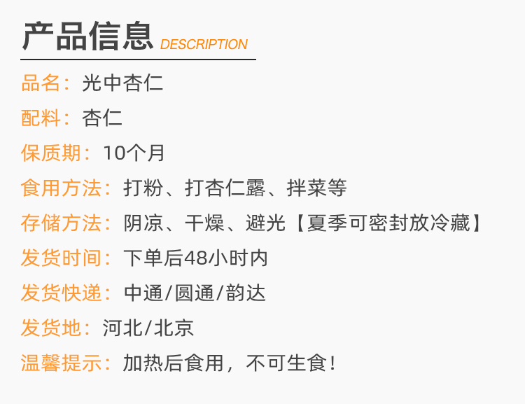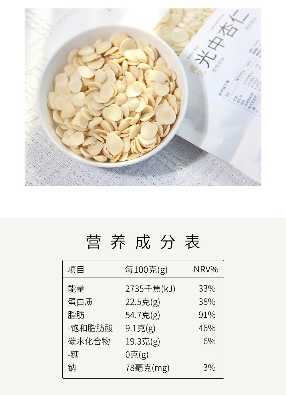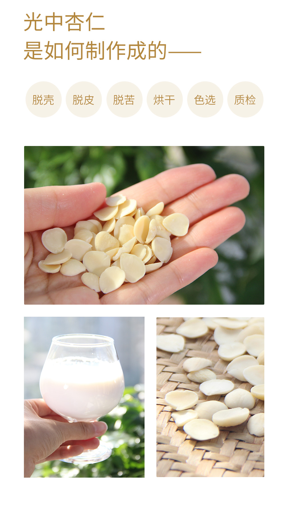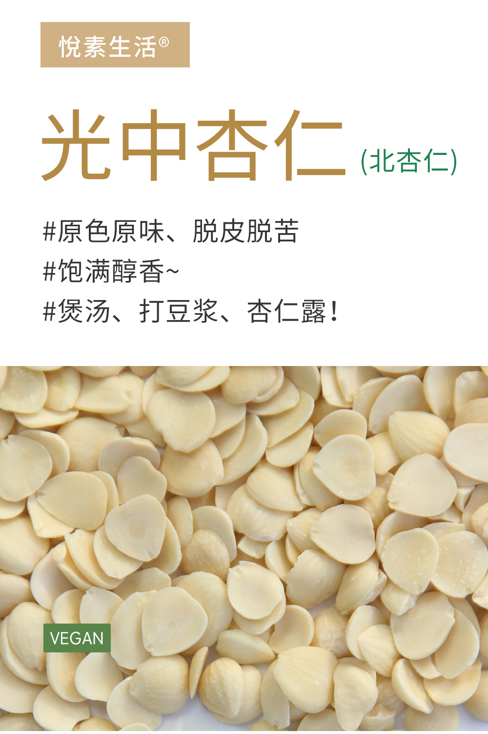 悦素生活 光中杏仁 北杏仁 250g*2袋