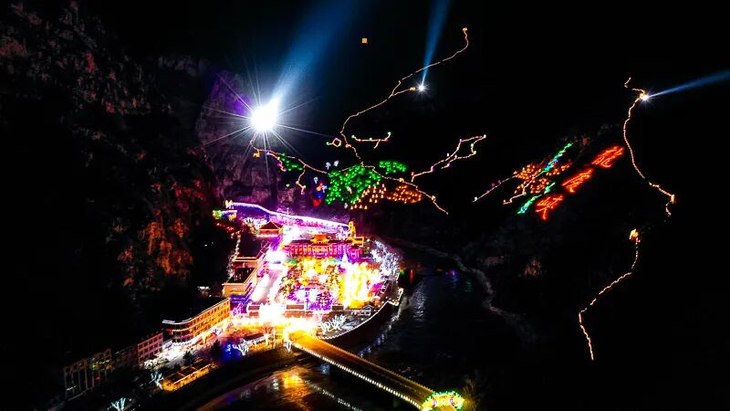 龙庆峡文化广场上还有精彩的非遗表演、综艺演出。如果玩饿了,可以去热闹的集市品尝各种美味的小吃。