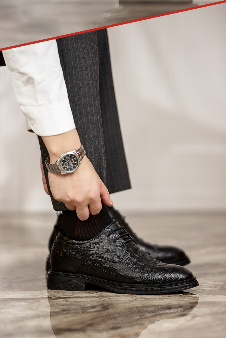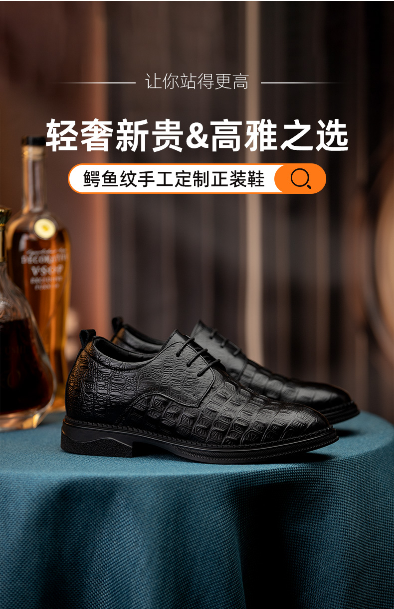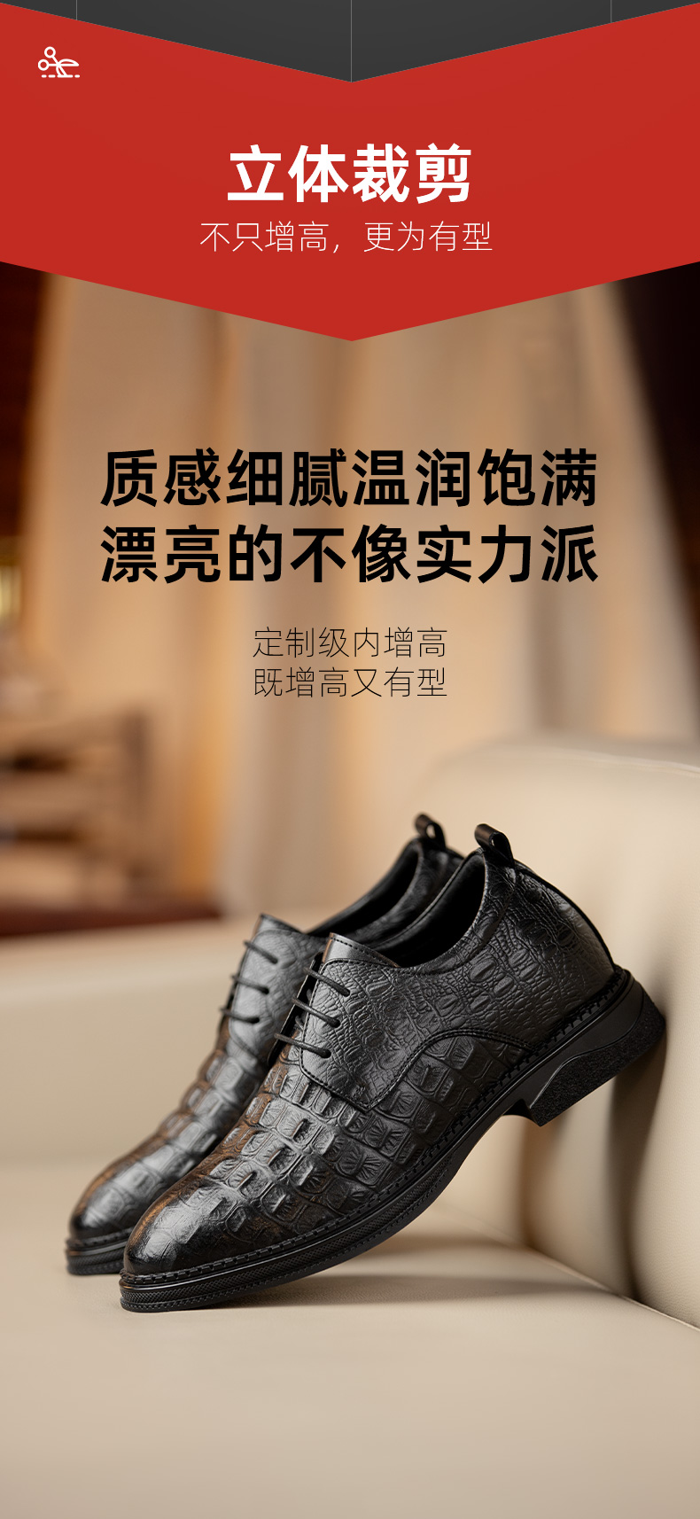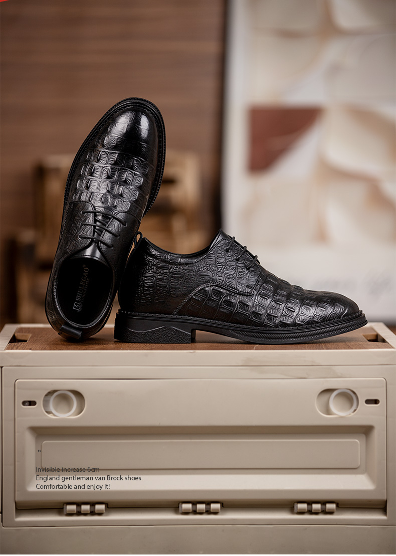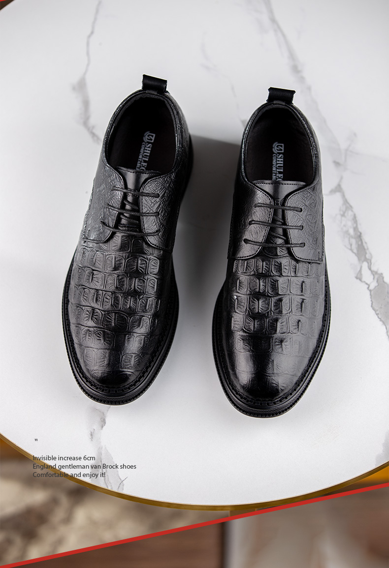 舒乐高内增高皮鞋男士6cm鳄鱼纹商务正装男鞋结婚新郎婚鞋德比鞋