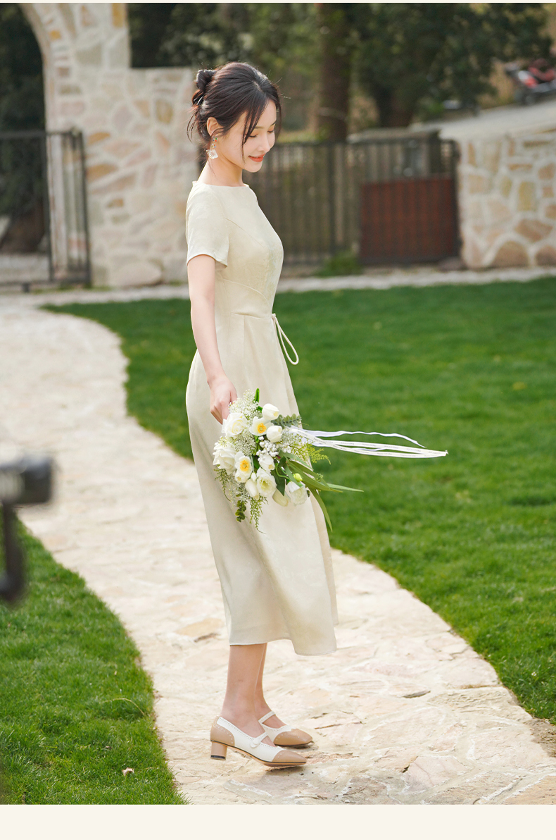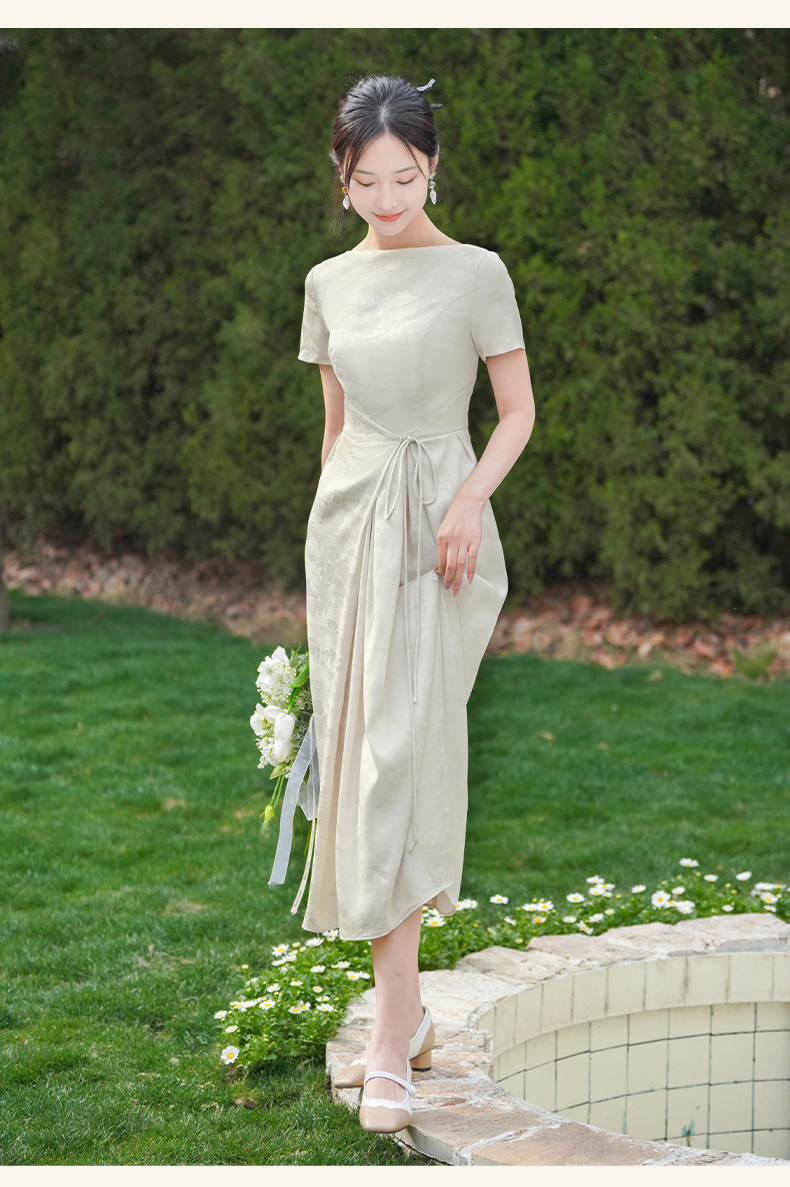 上海逸红颜拢月2025年夏季新款新中式国风山水提花软绸抽褶连衣裙