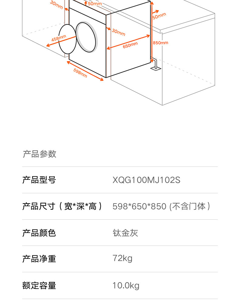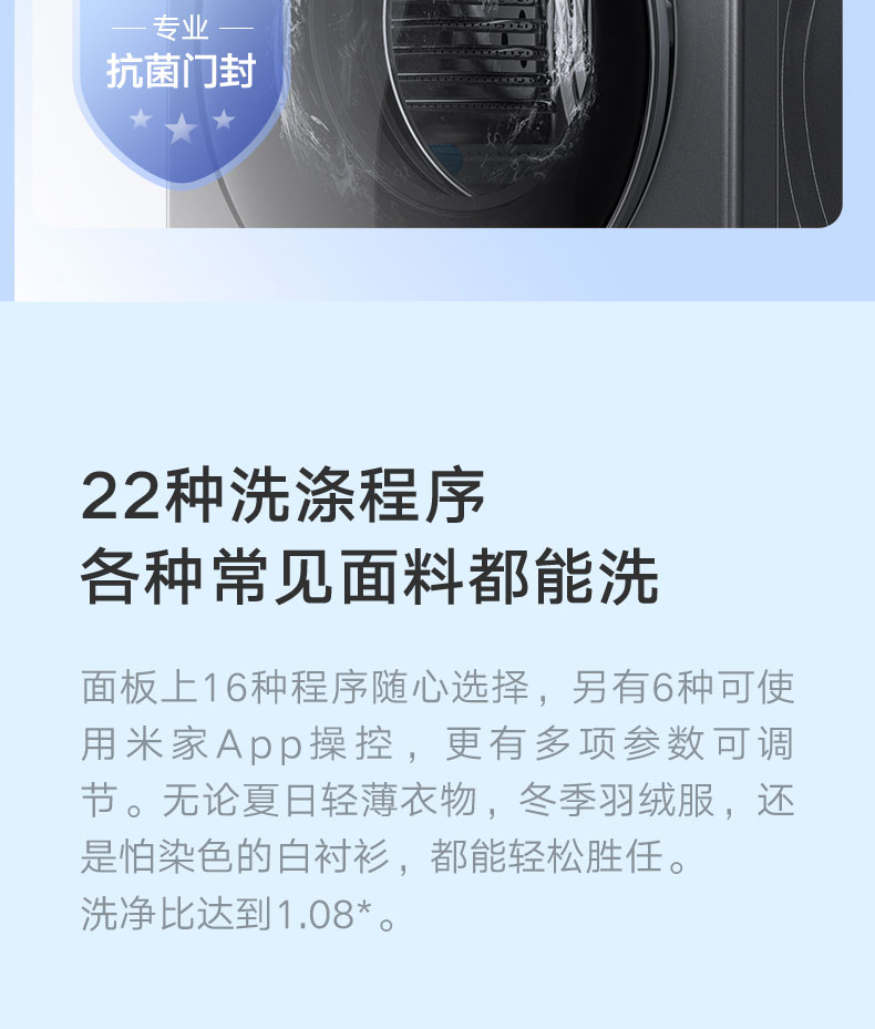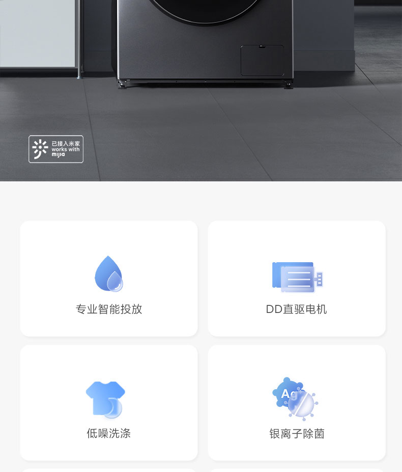 【小米热销】小米 米家 尊享版10kg滚筒洗衣机全自动 直驱变频低噪节能高温除菌除螨 XQG100MJ102S